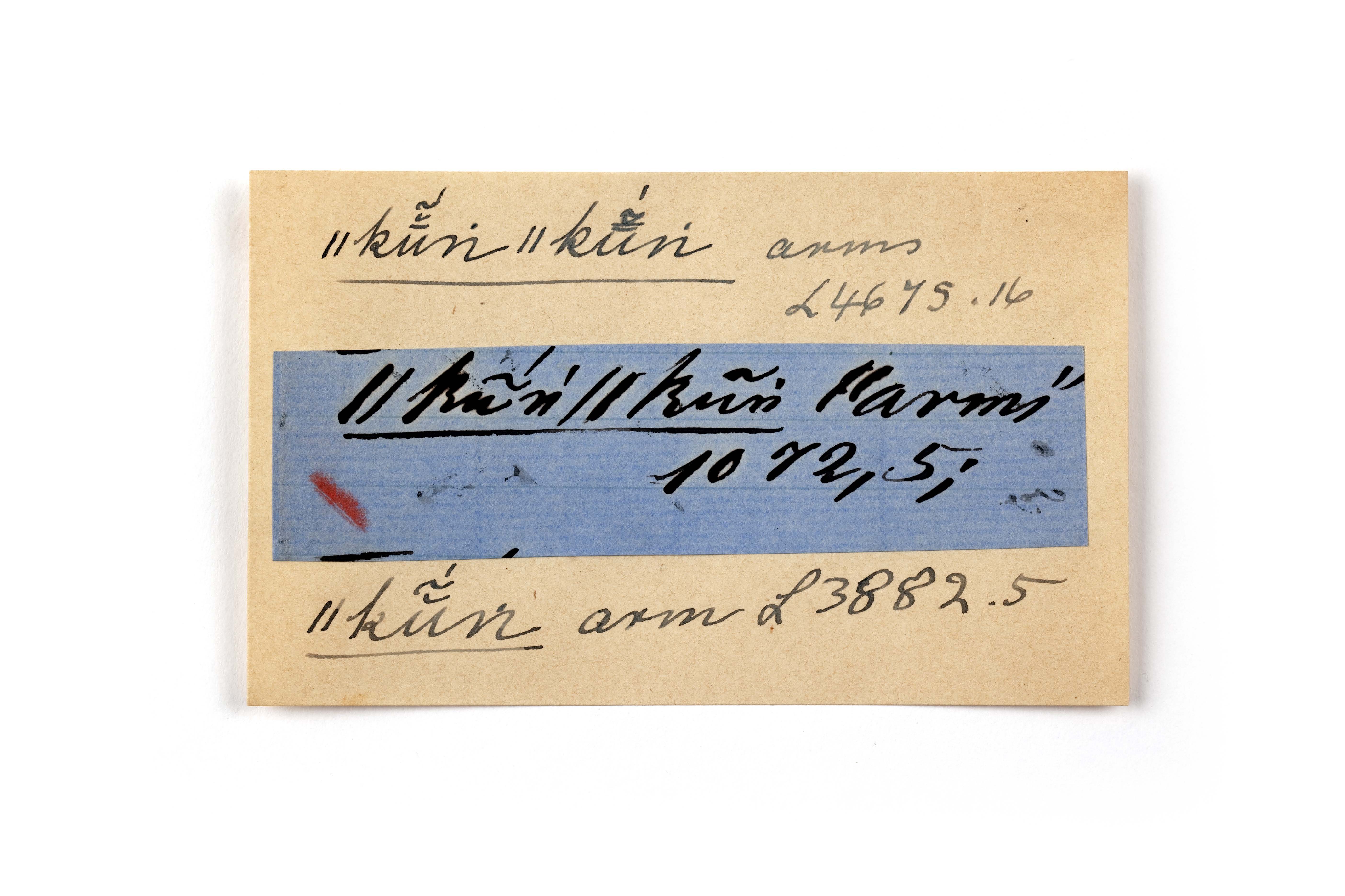 ink on blue paper glued on card