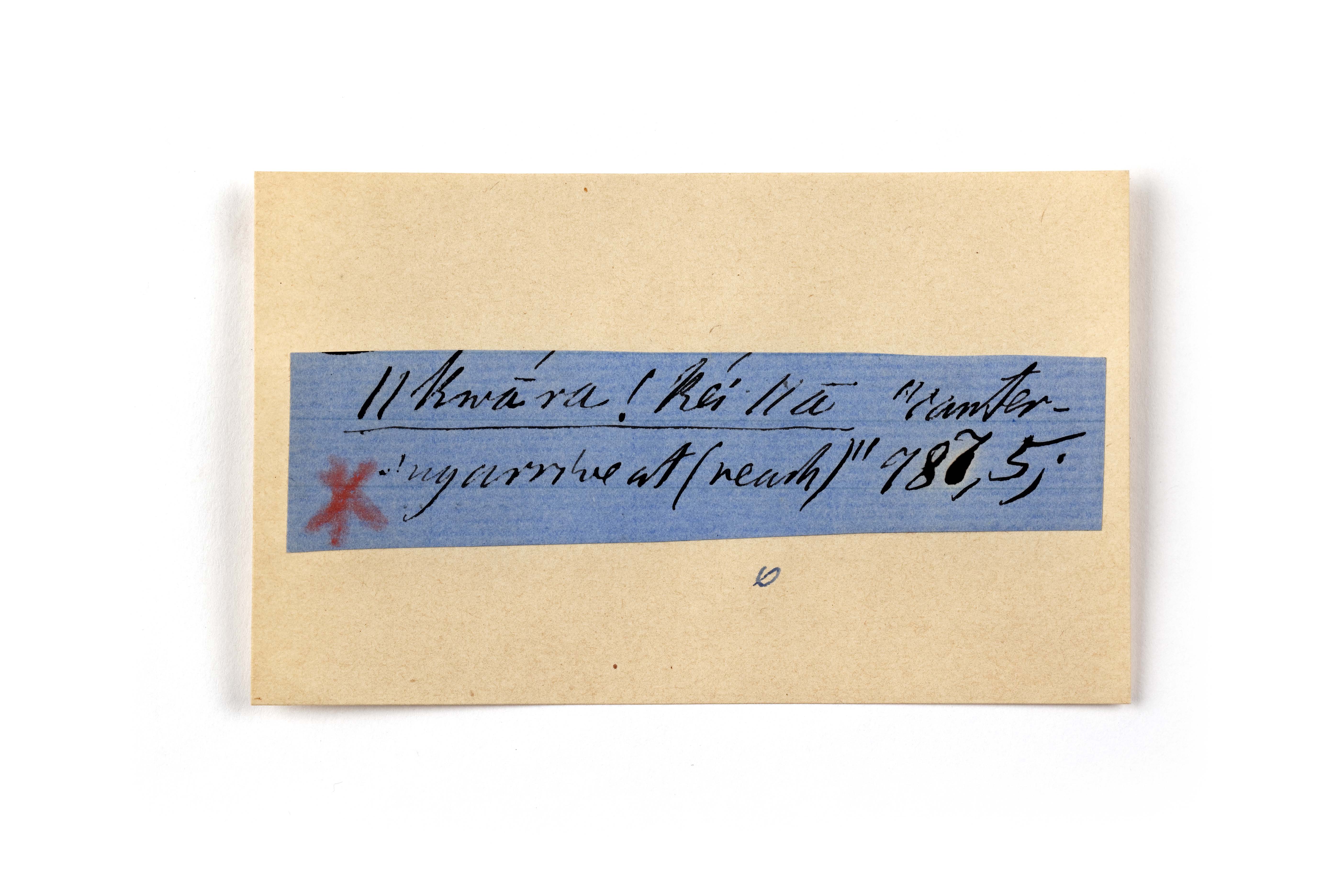ink on blue paper glued on card