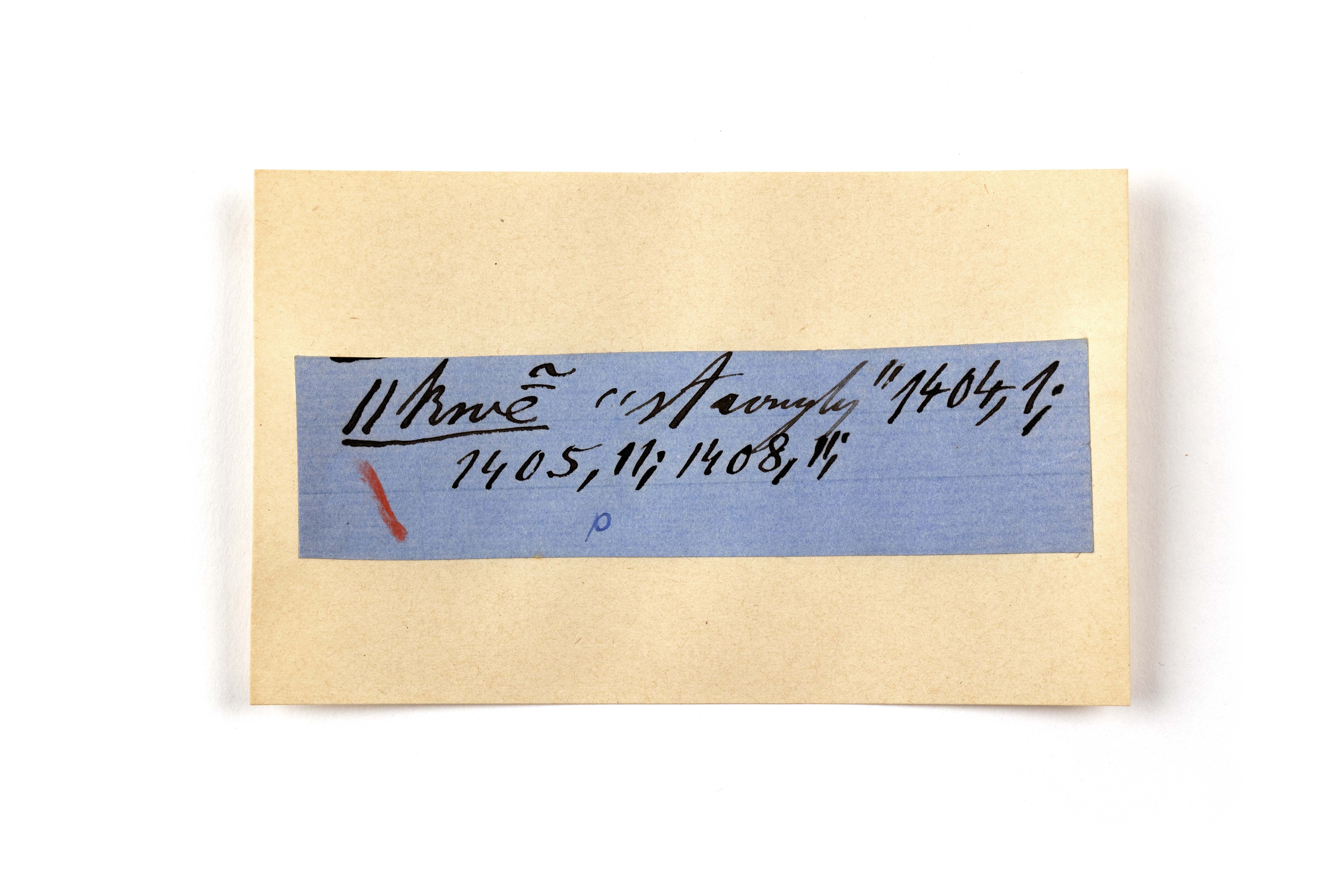 ink on blue paper glued on card