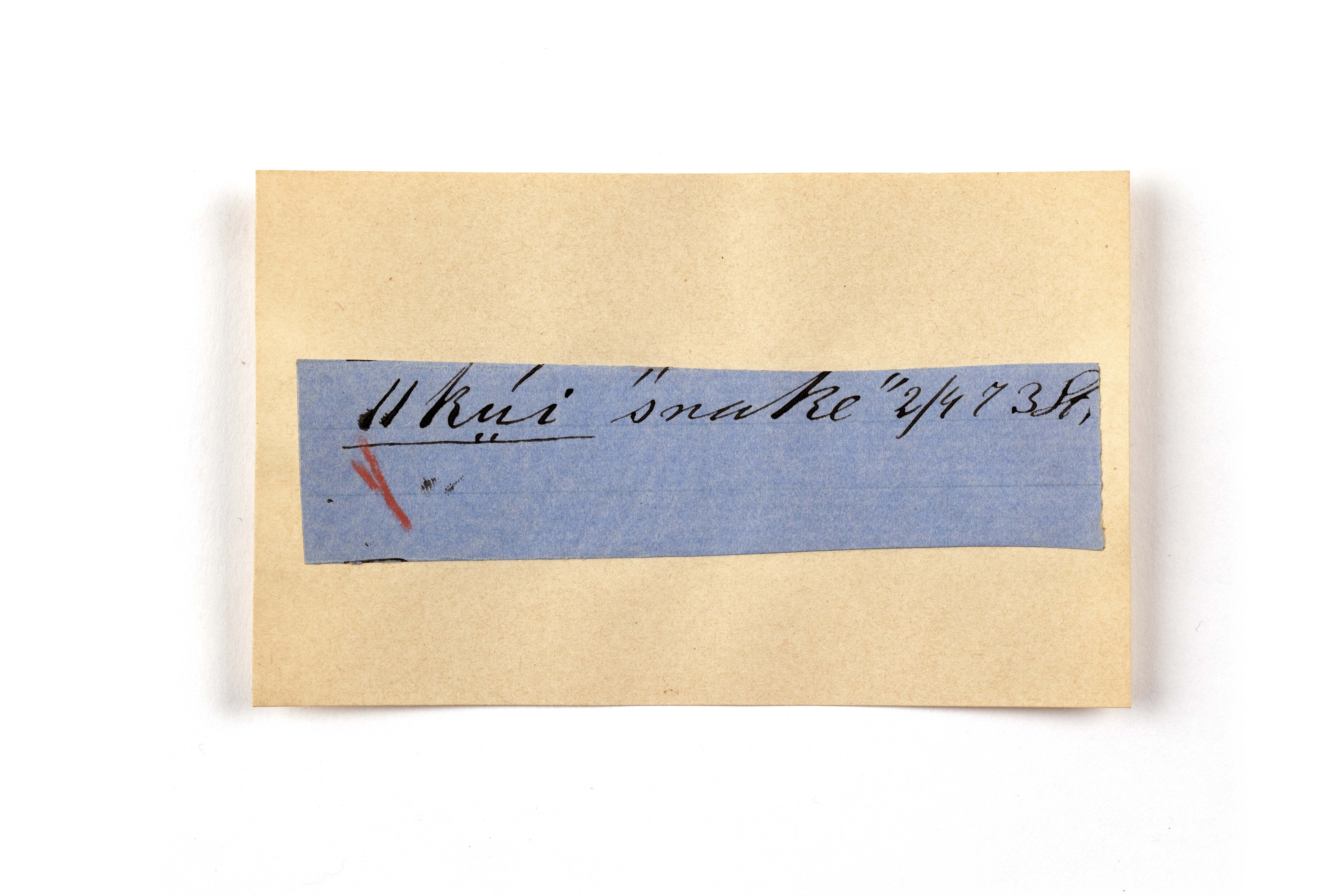 ink on blue paper glued on card