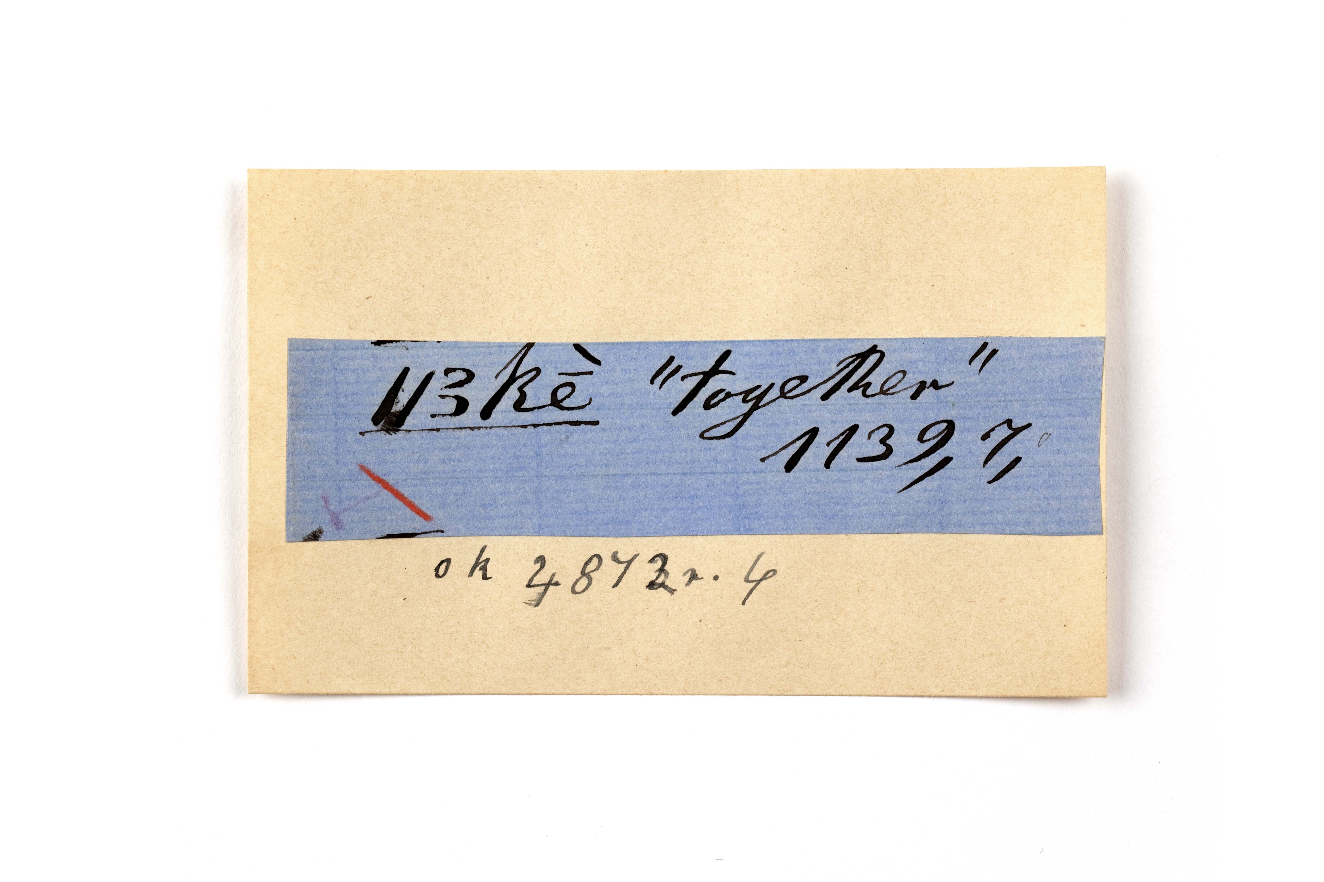 ink on blue paper glued on card