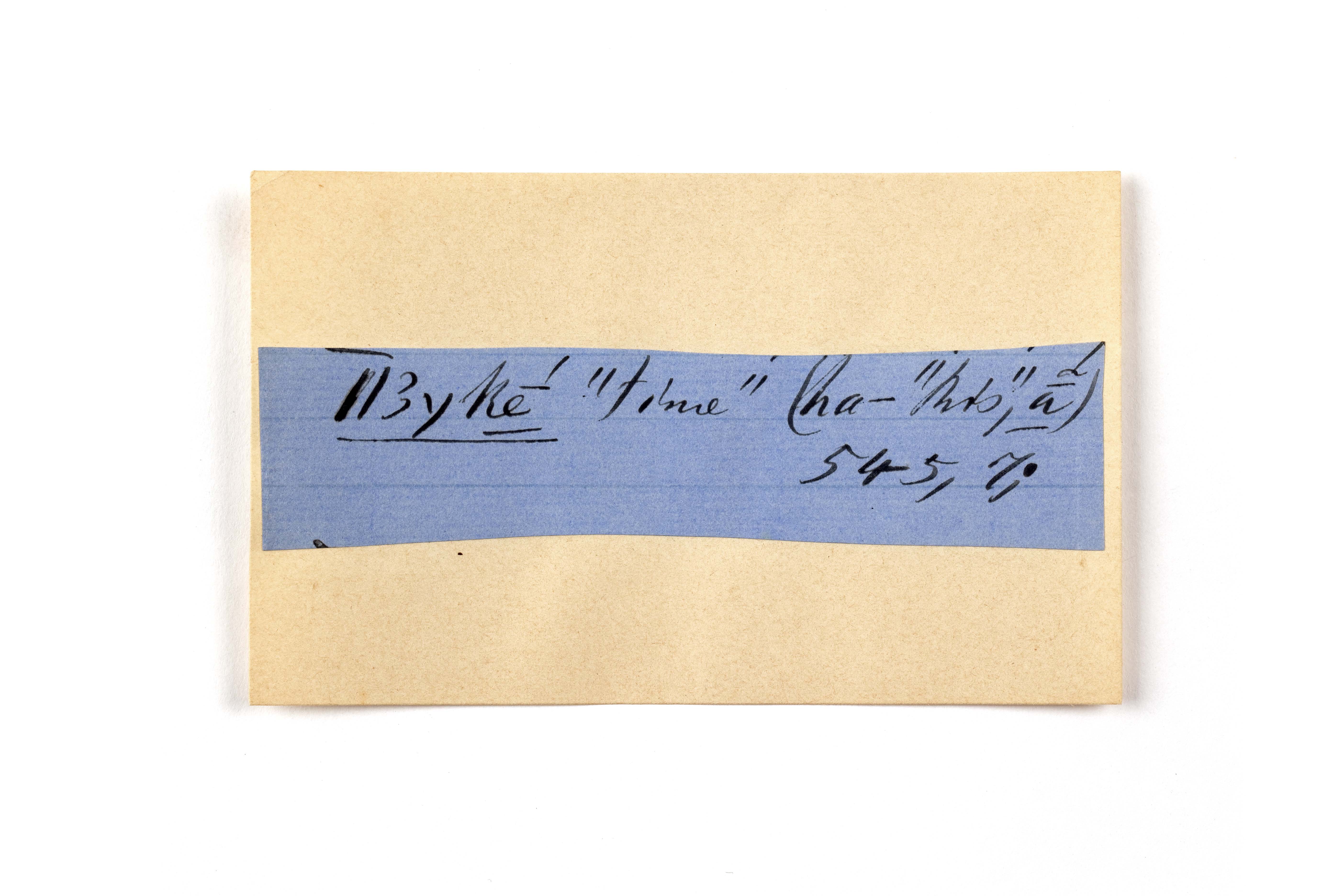 ink on blue paper glued on card