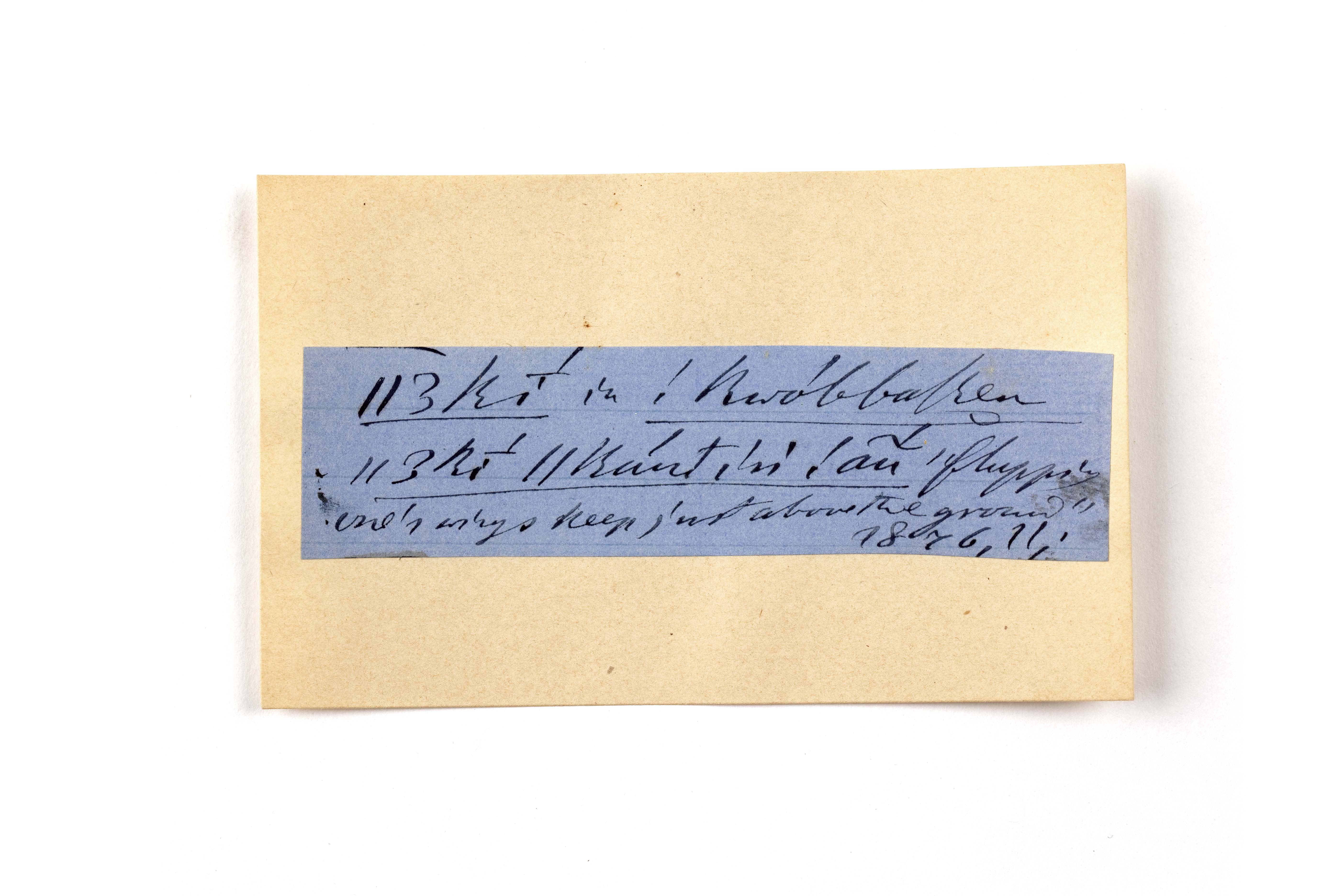 ink on blue paper glued on card