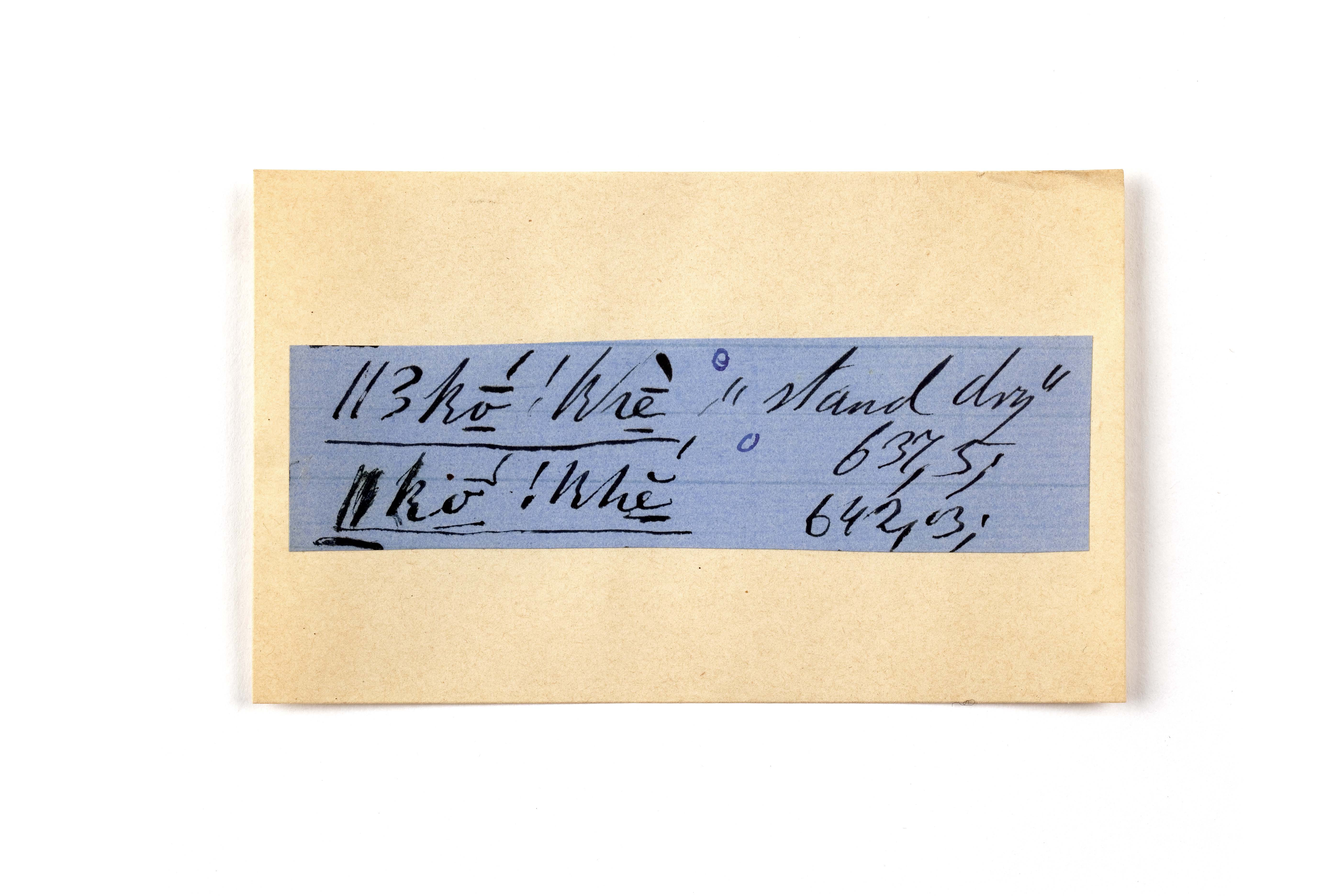 ink on blue paper glued on card