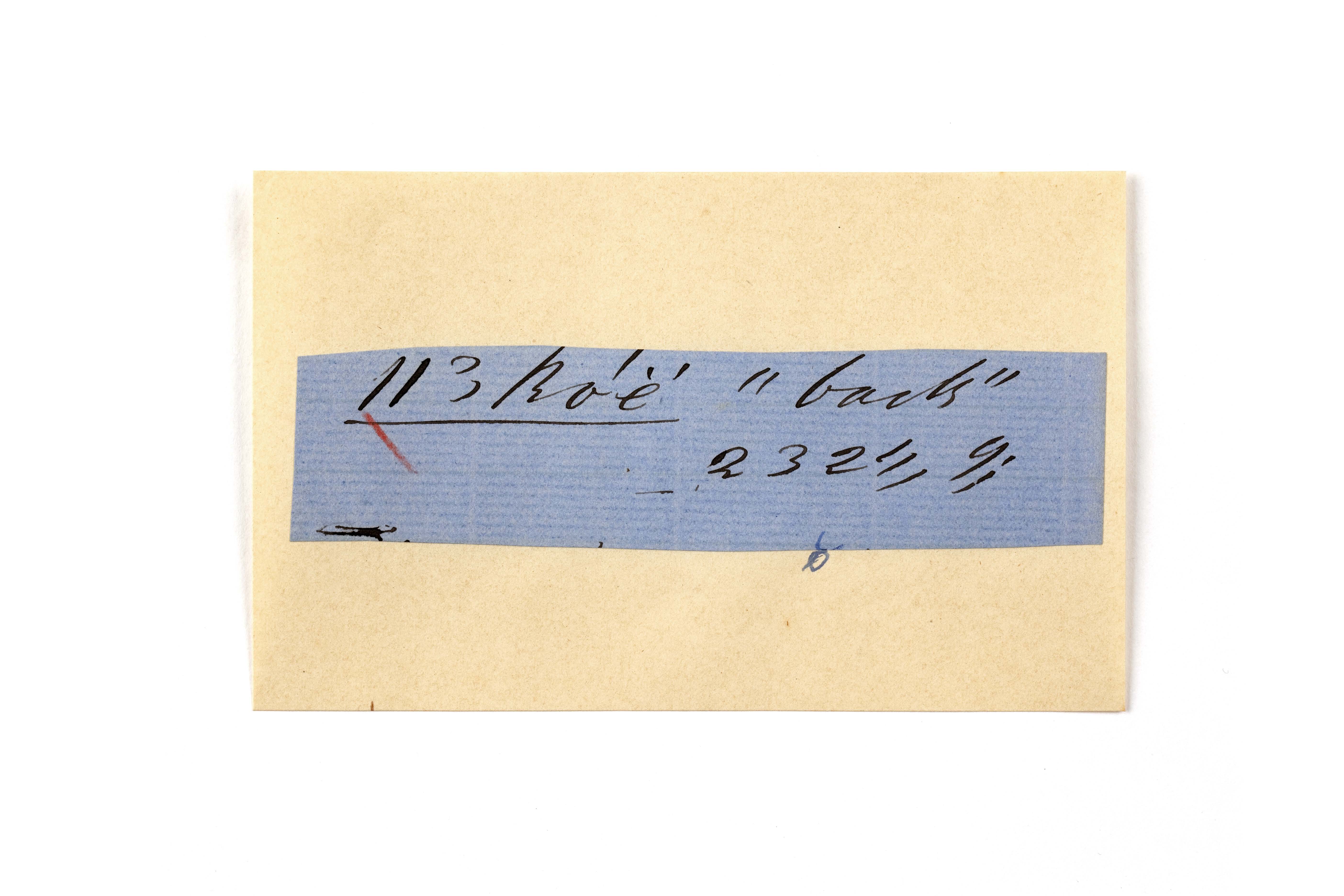 ink on blue paper glued on card