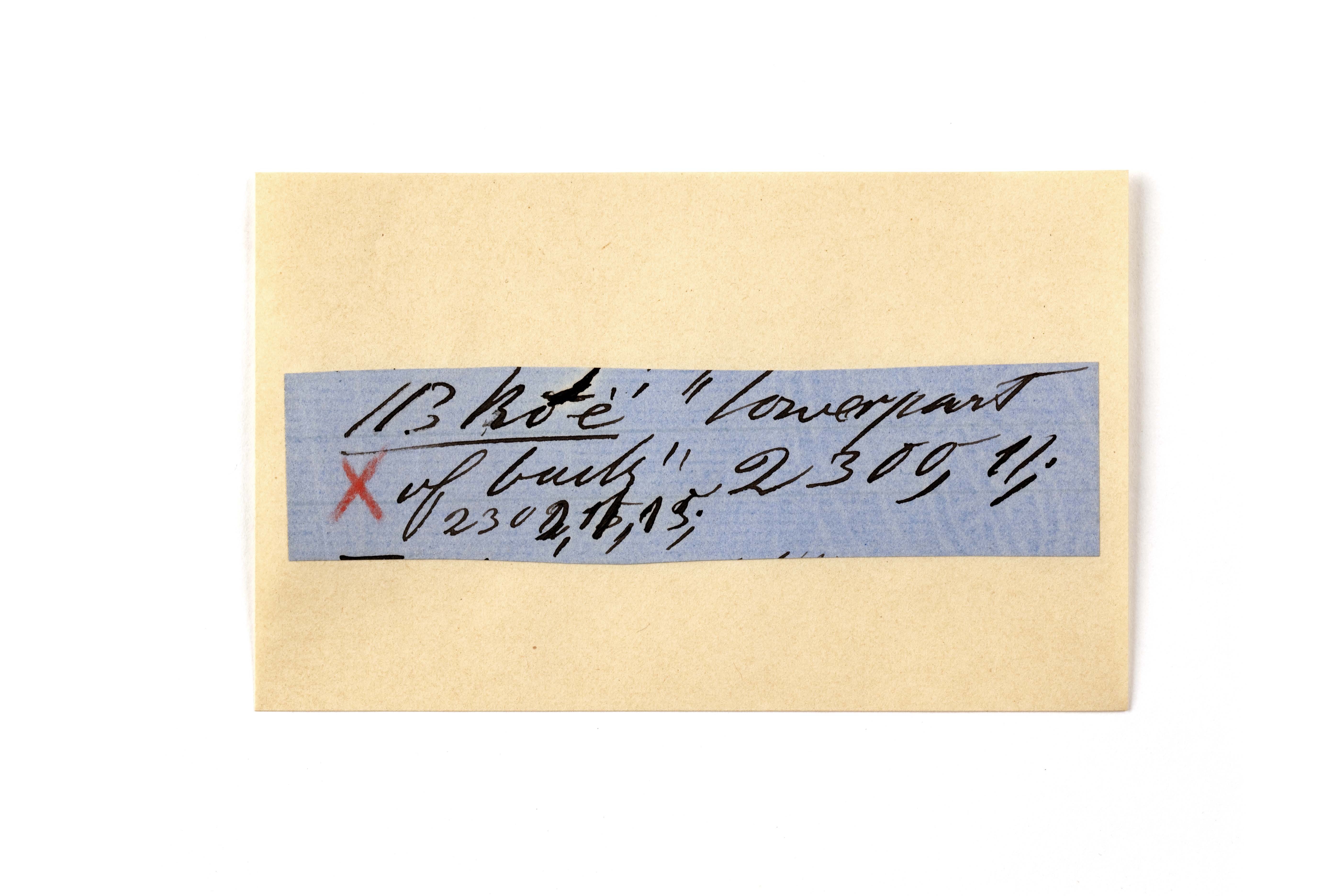 ink on blue paper glued on card
