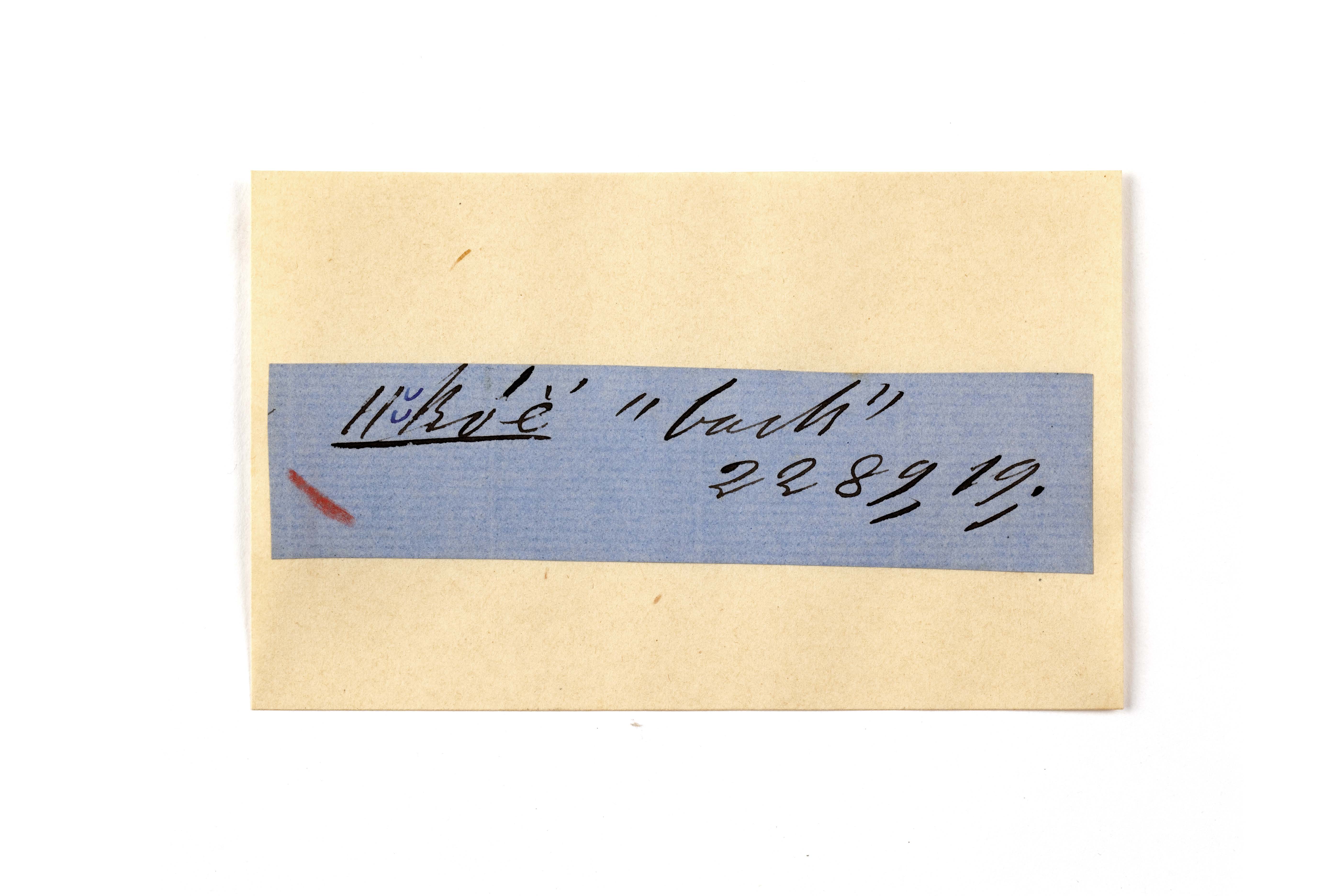 ink on blue paper glued on card