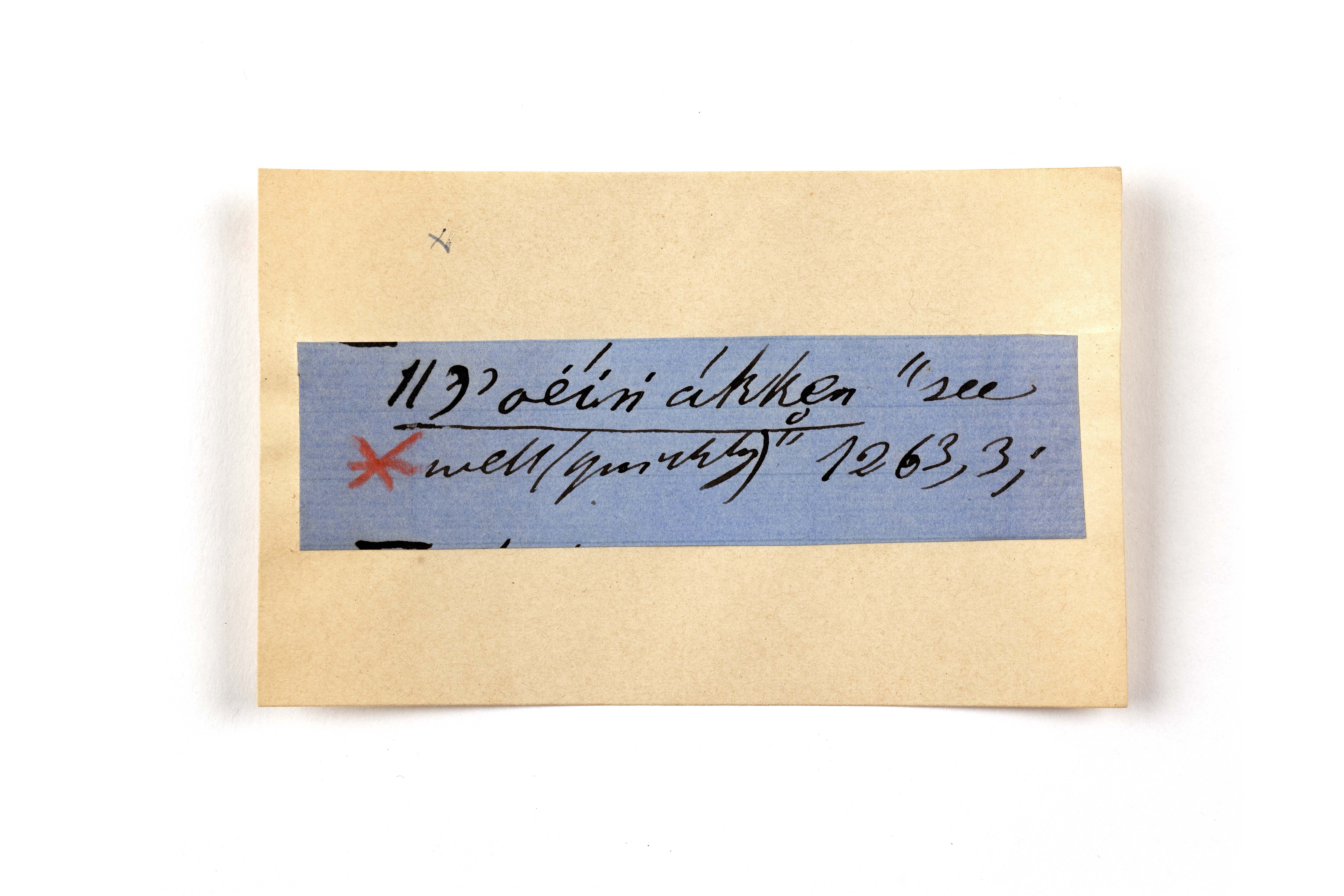 ink on blue paper glued on card