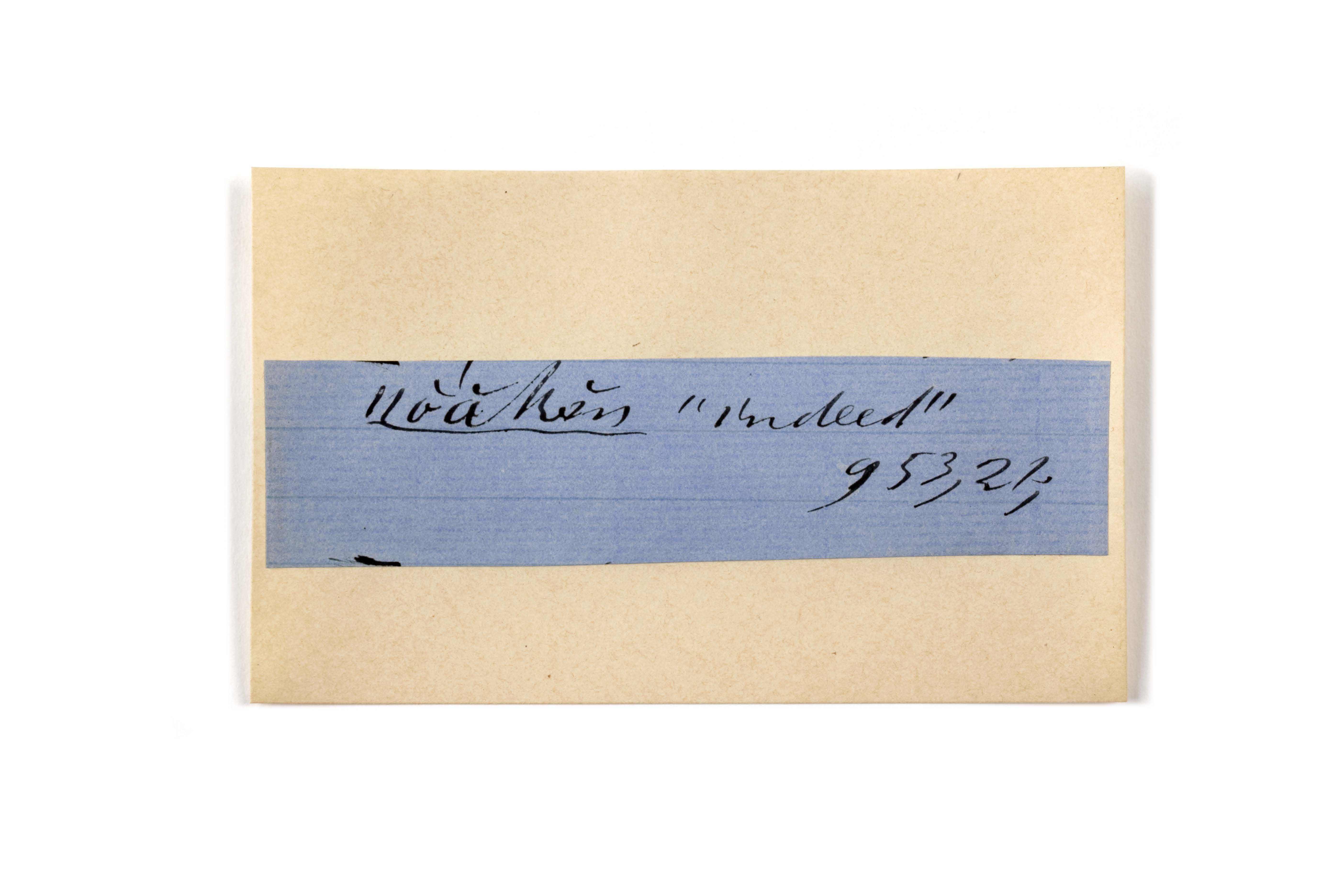 ink on blue paper glued on card