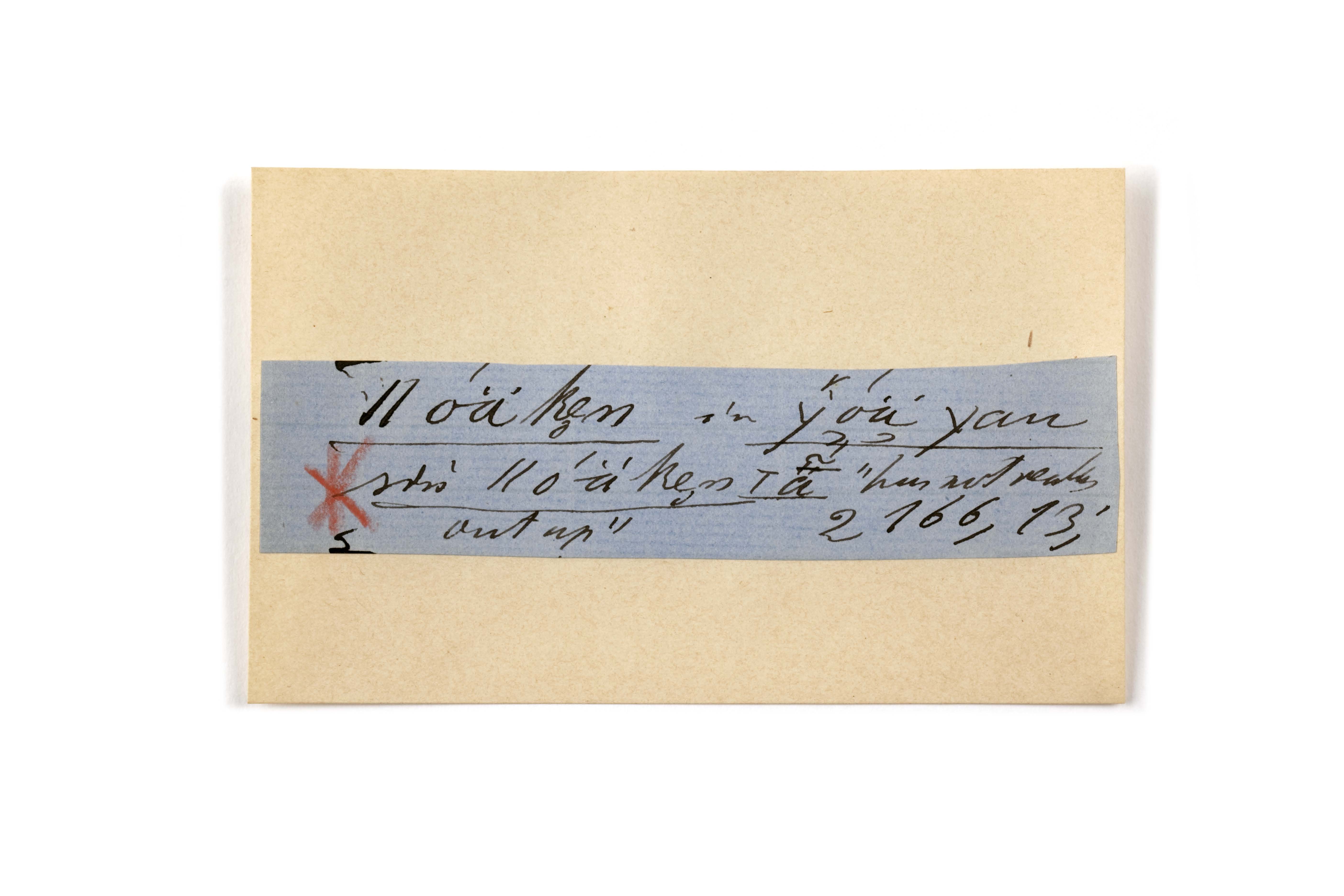 ink on blue paper glued on card