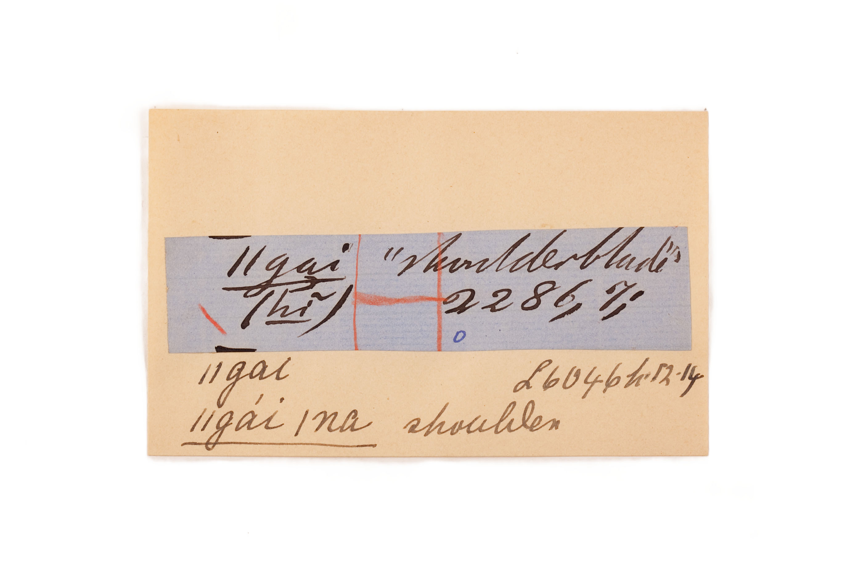 ink on blue paper glued on card