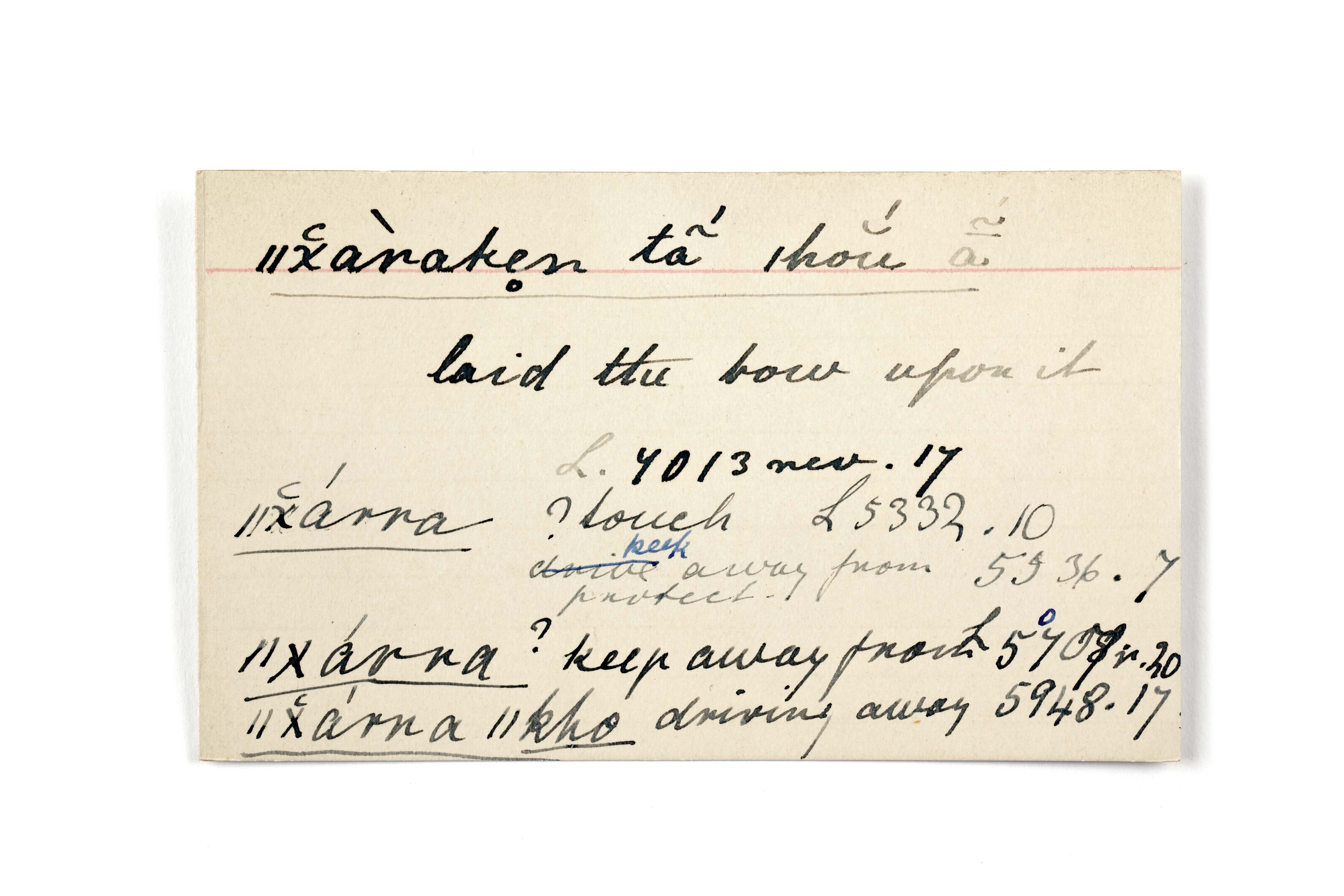laid the bow upon it, touch, protect away from, keep away from, driving away