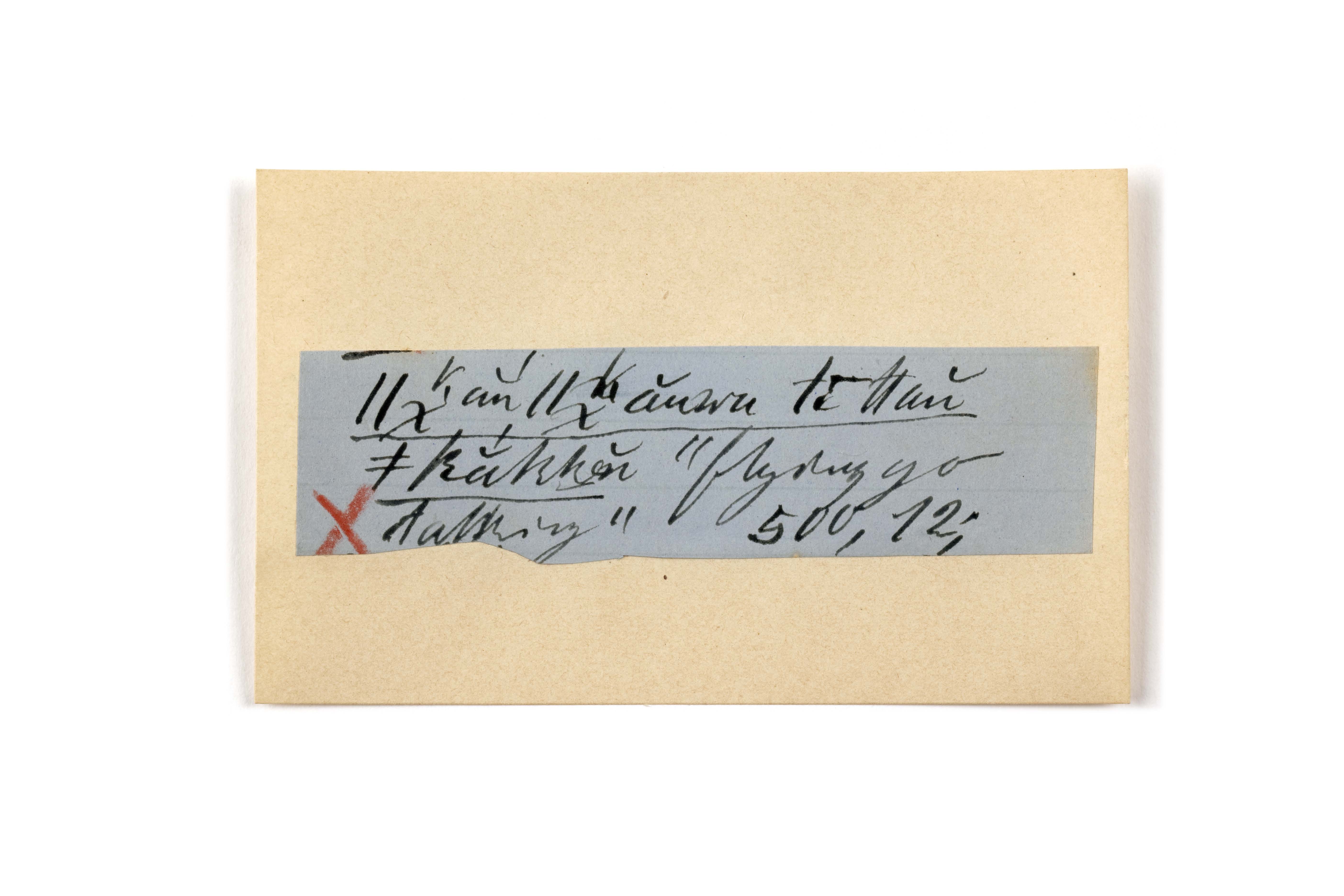 ink on blue paper glued on card