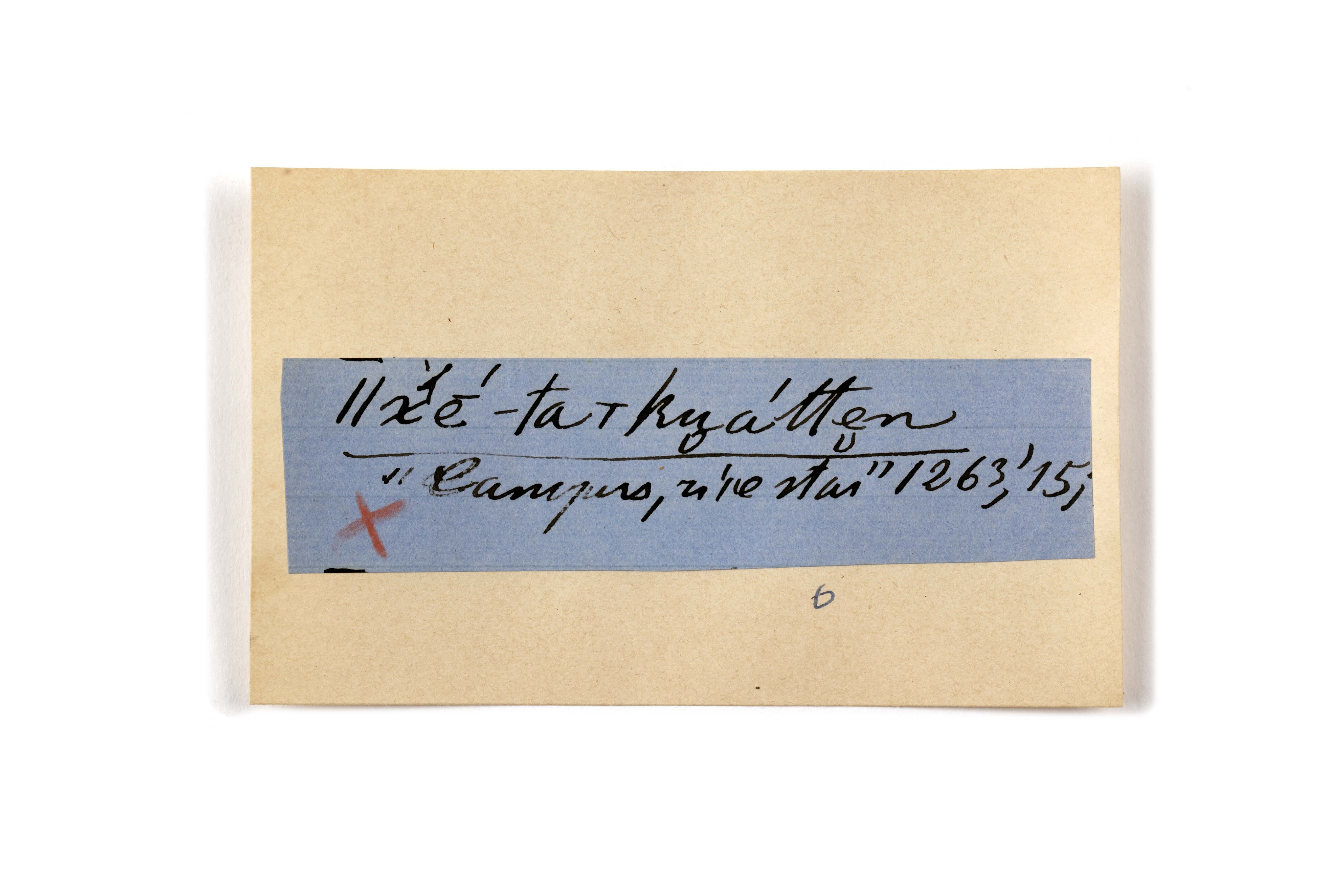 ink on blue paper glued on card
