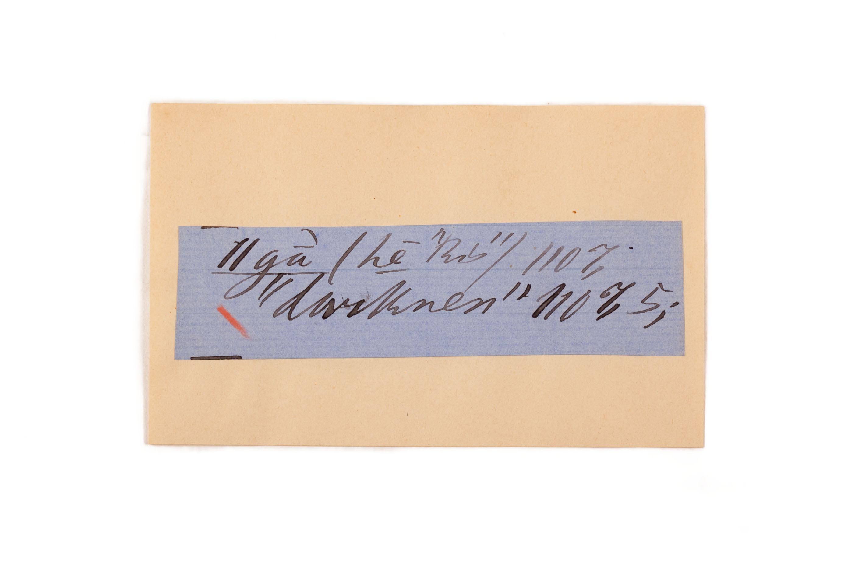 ink on blue paper glued on card