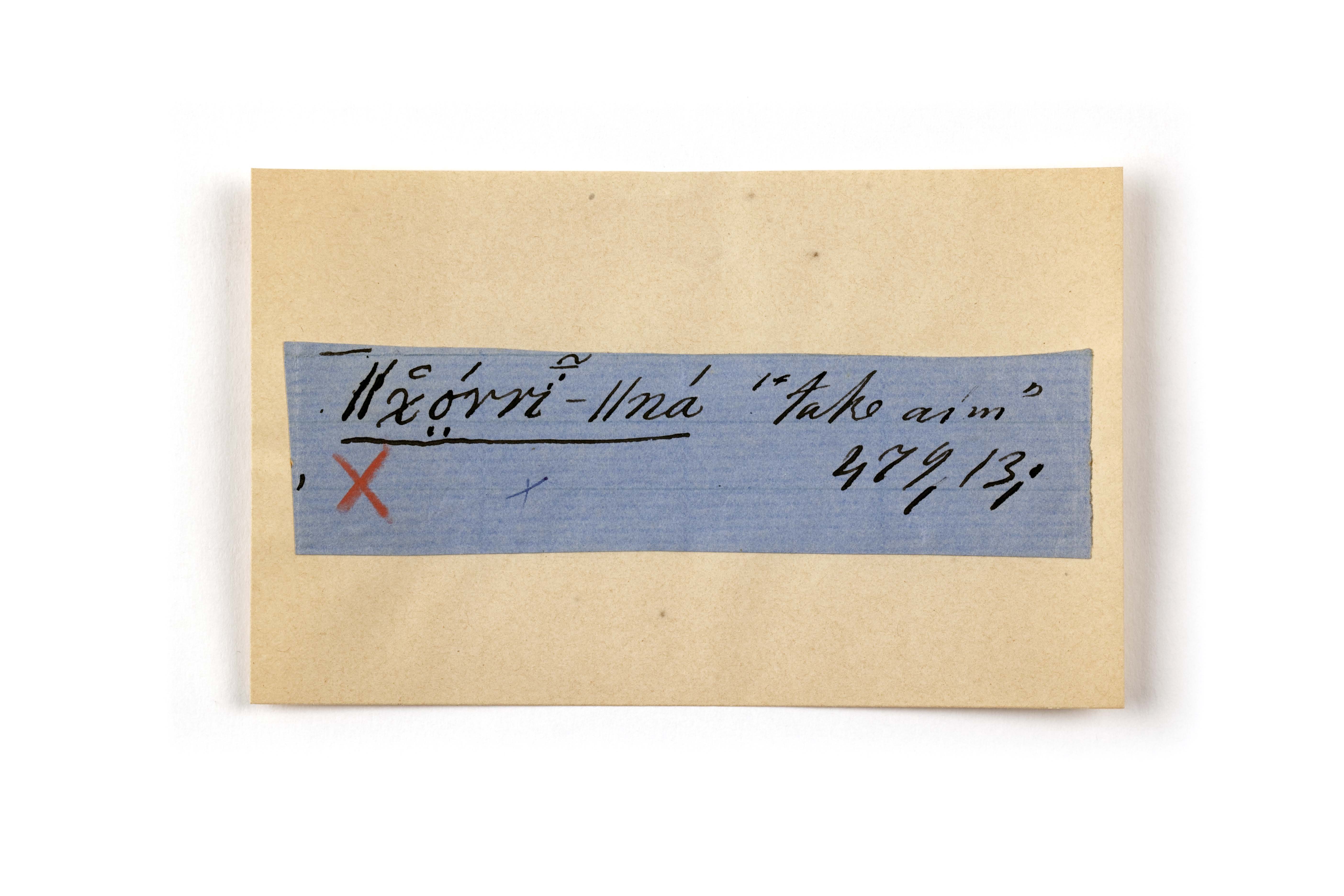 ink on blue paper glued on card