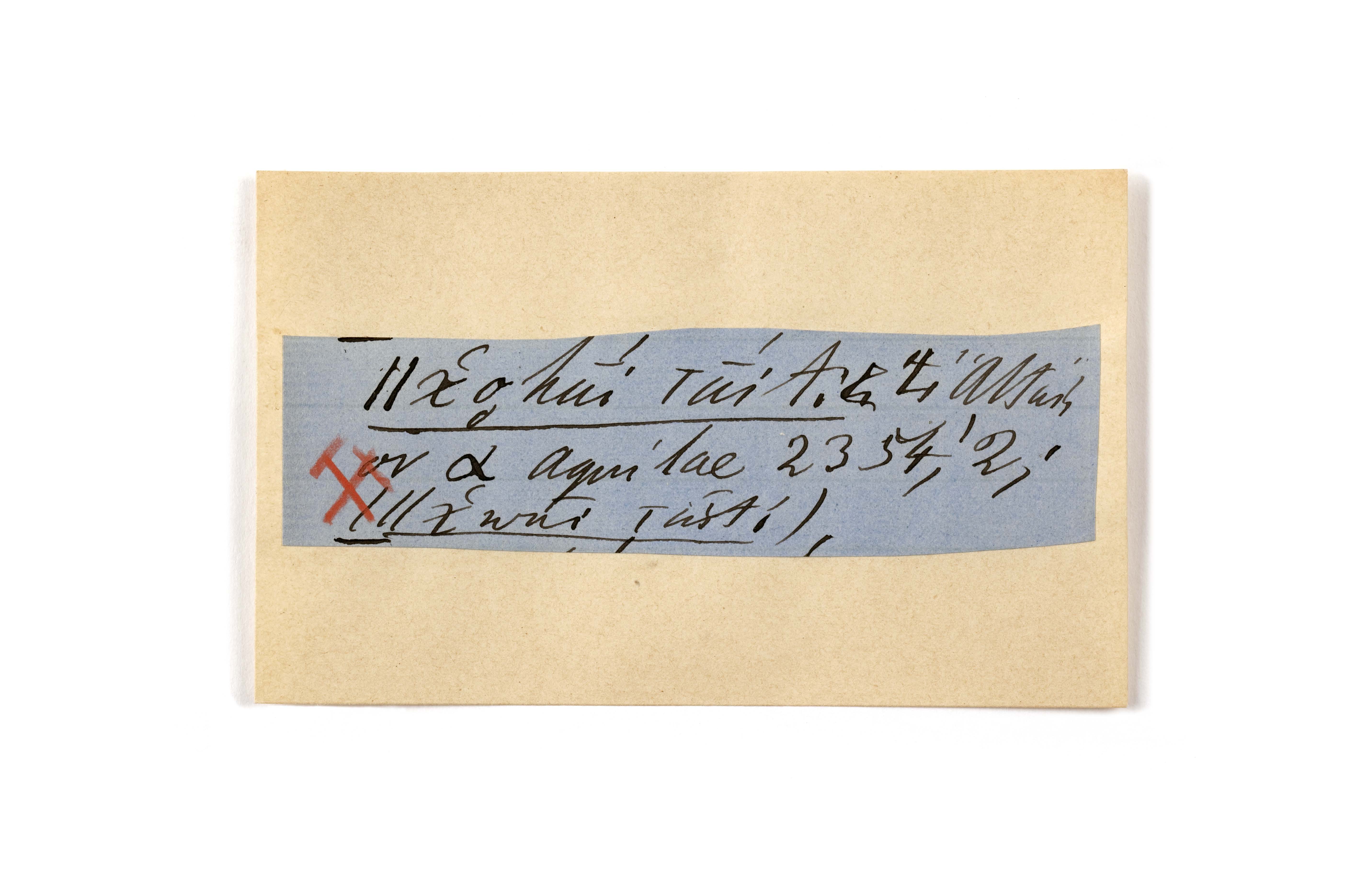 ink on blue paper glued on card