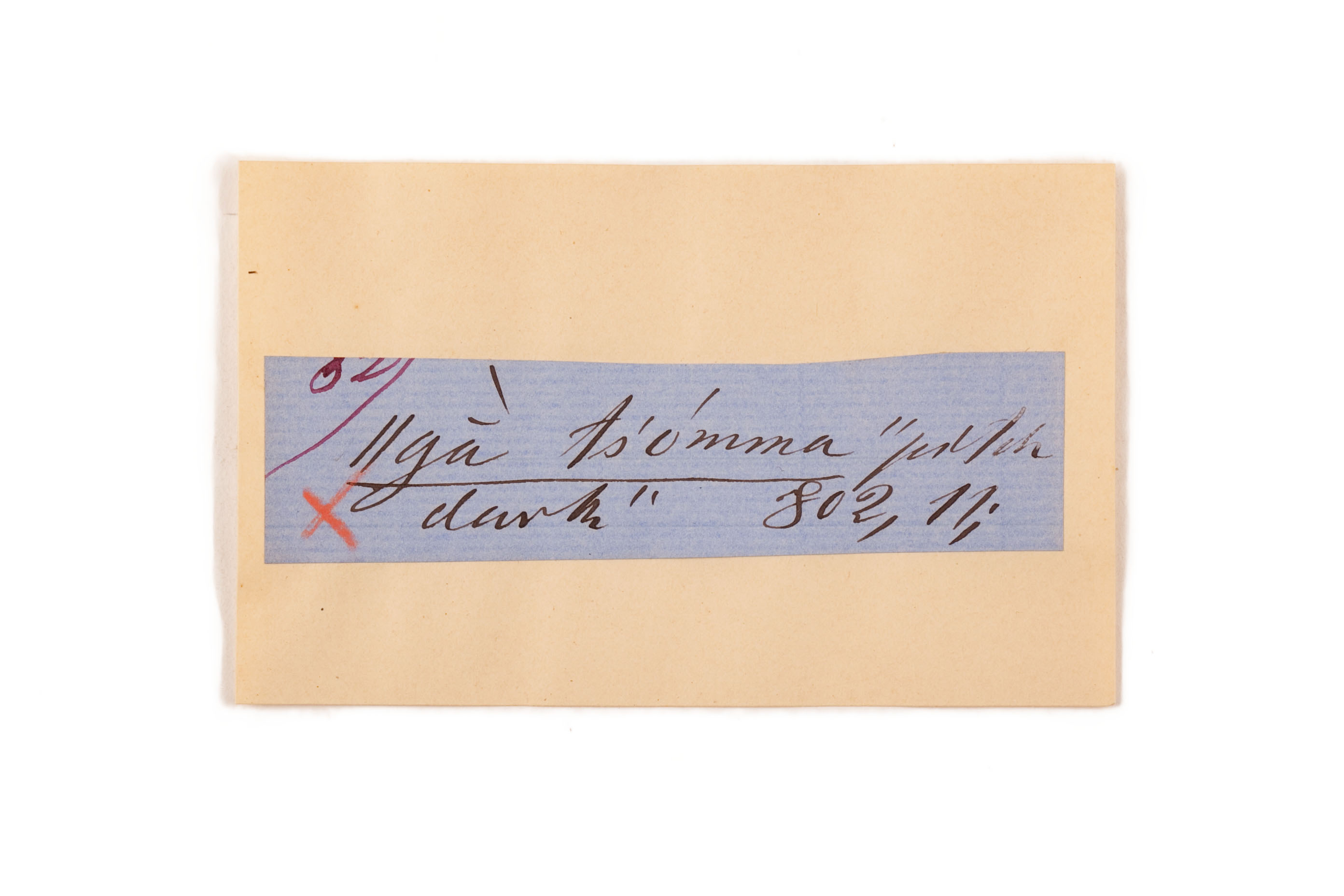 ink on blue paper glued on card