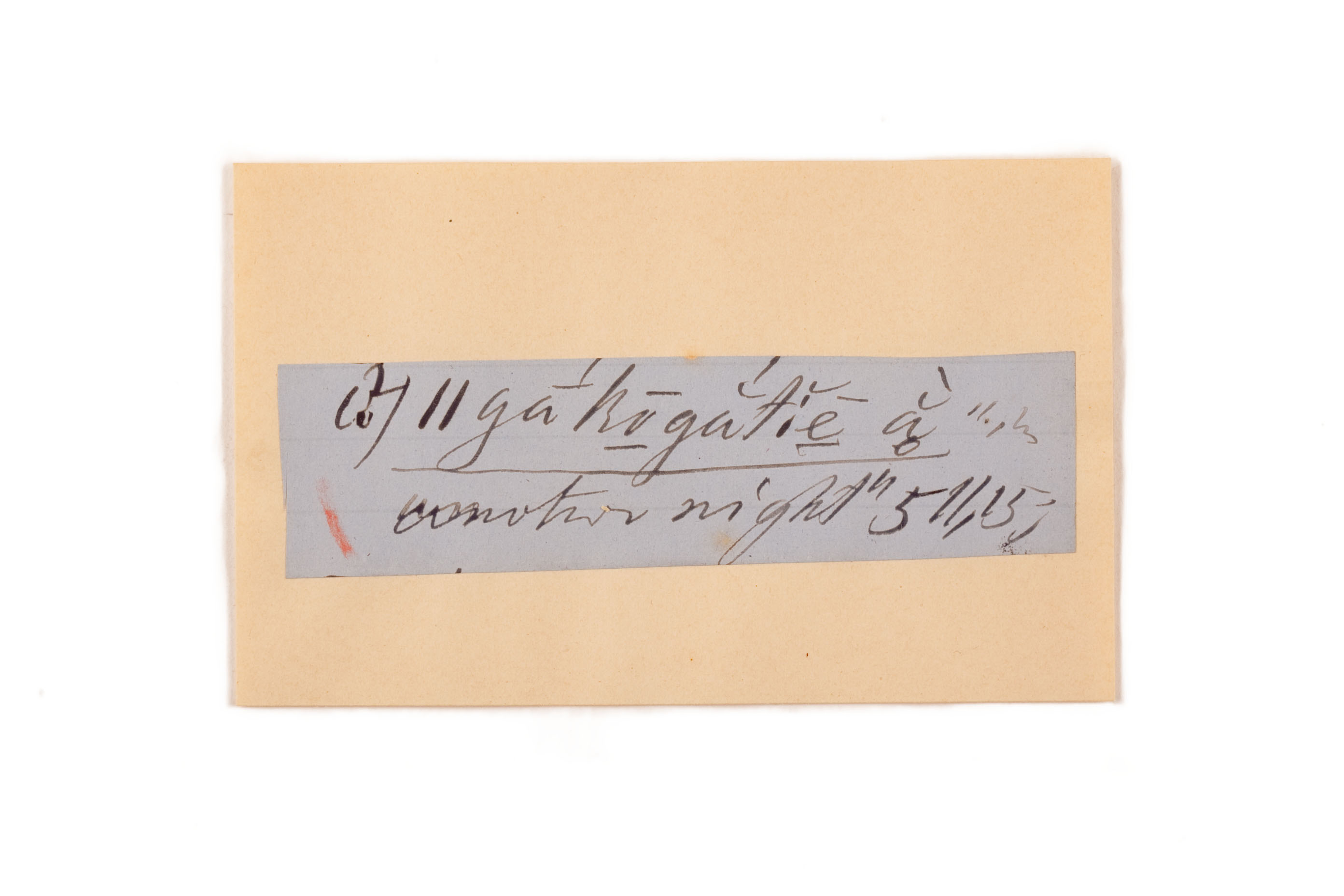 ink on blue paper glued on card