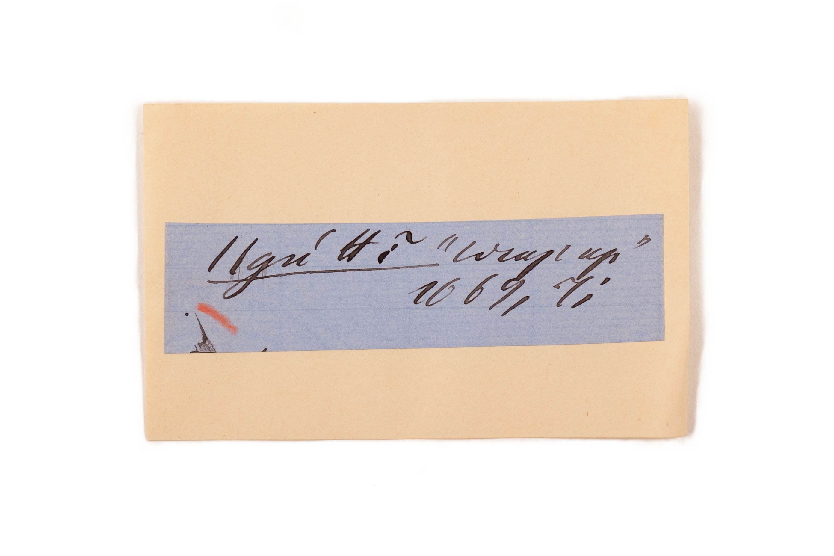 ink on blue paper glued on card
