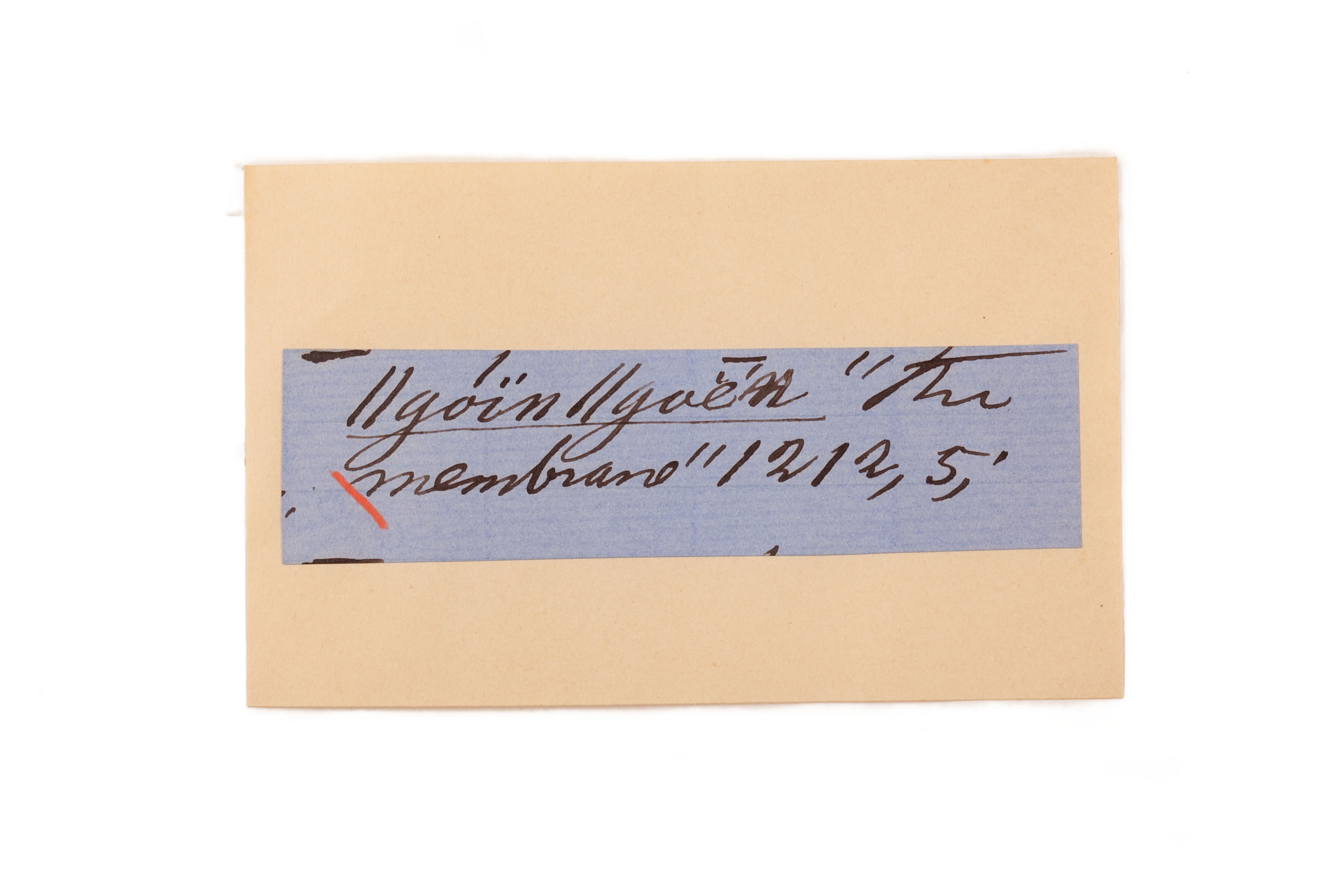 ink on blue paper glued on card