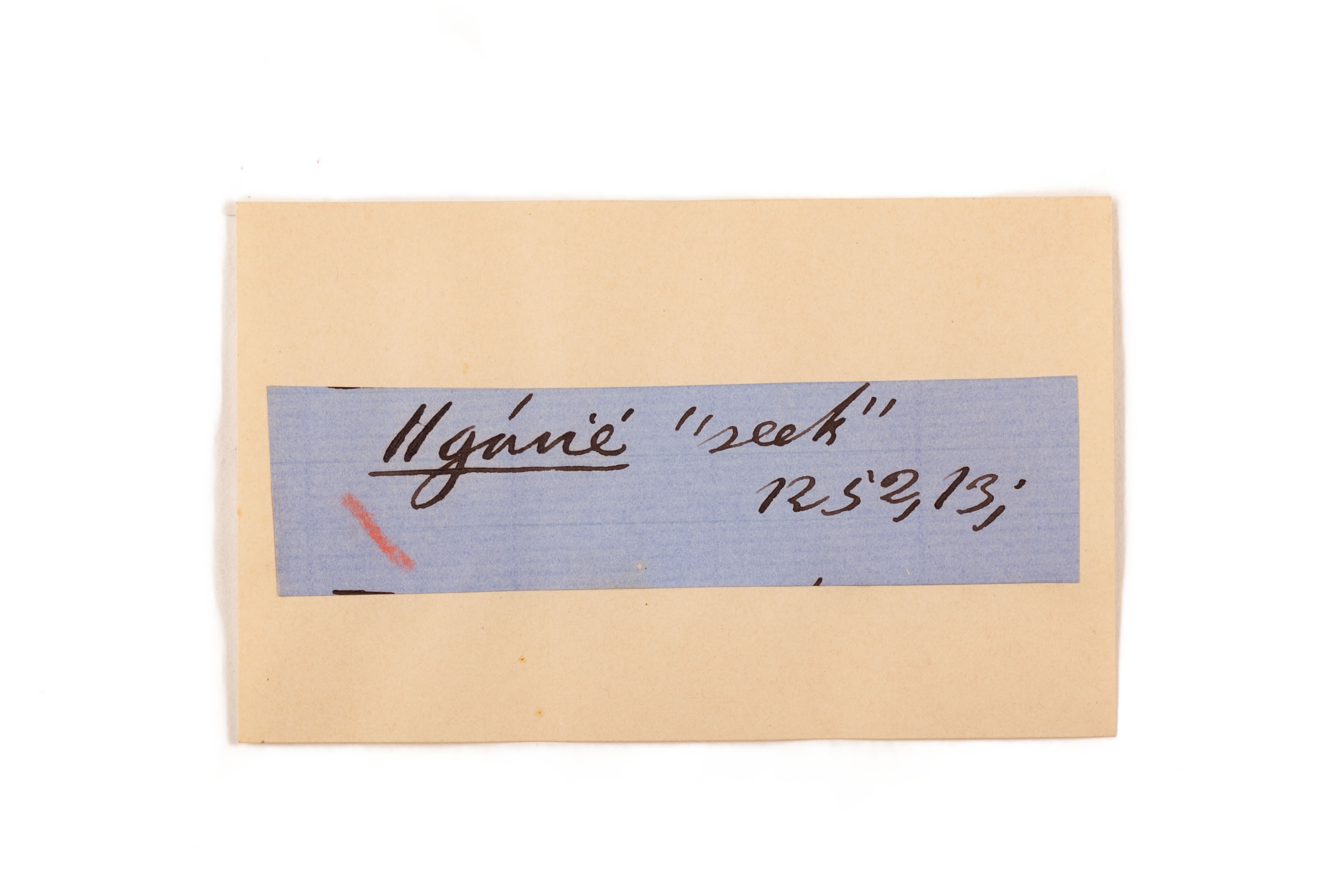ink on blue paper glued on card