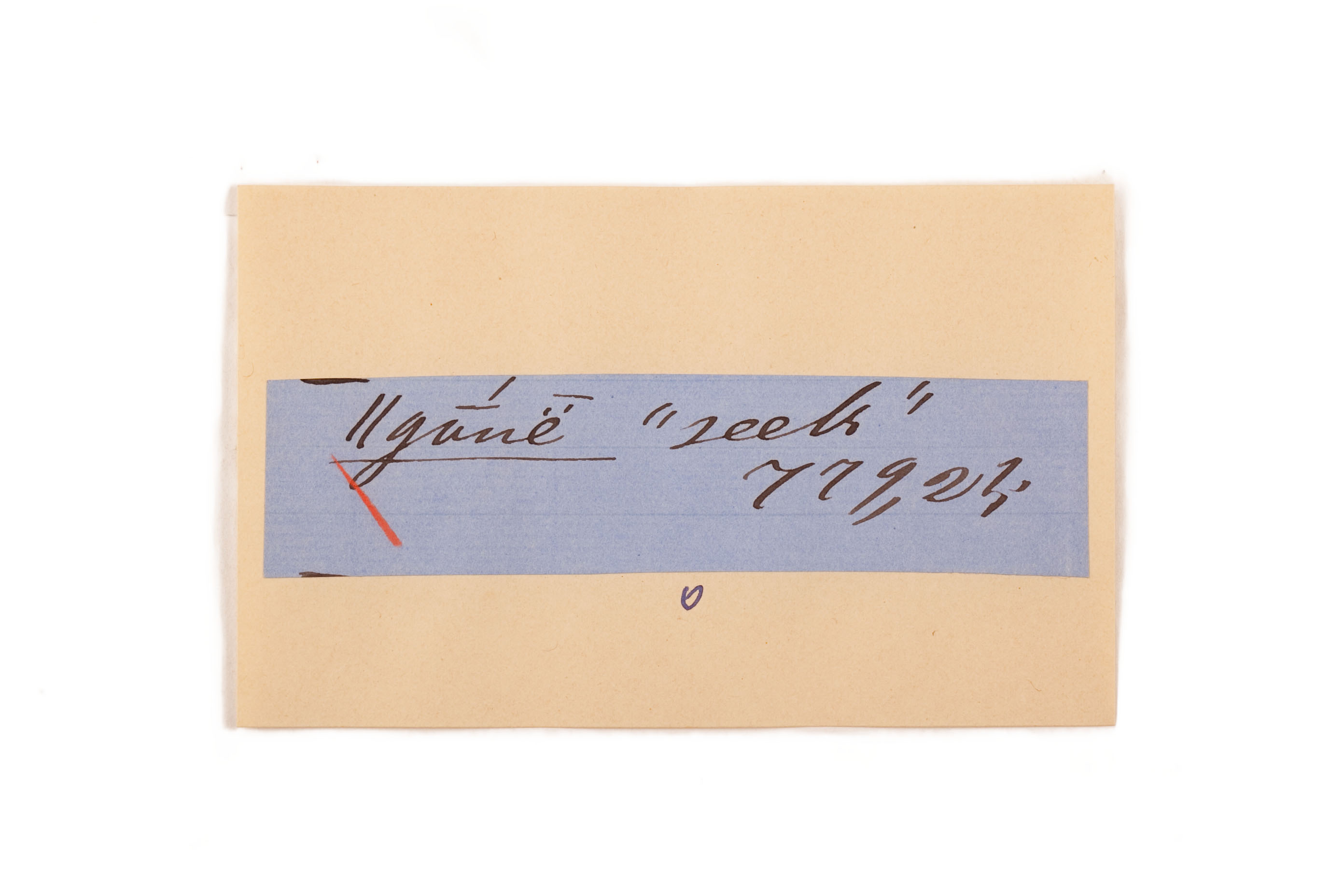 ink on blue paper glued on card