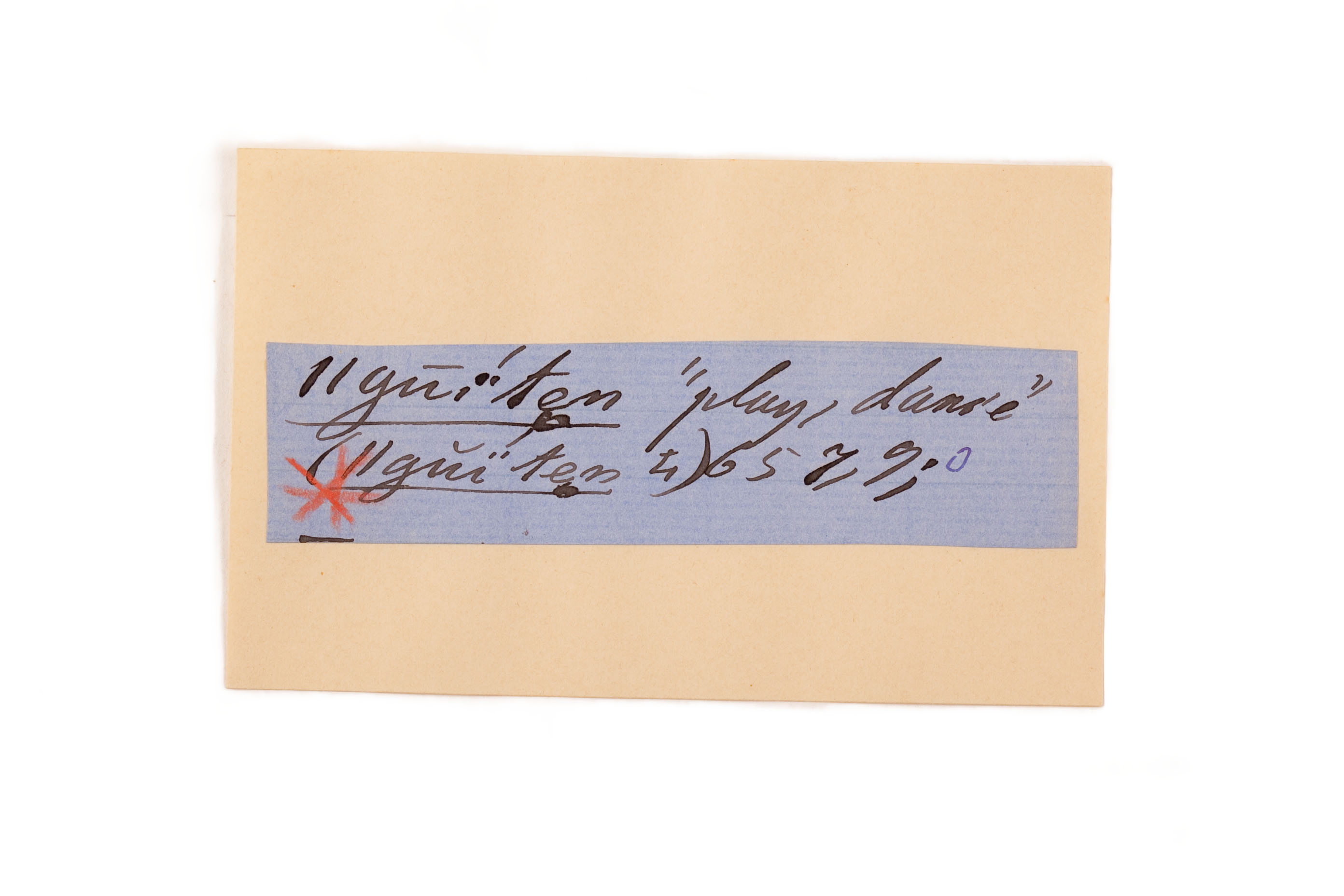 ink on blue paper glued on card