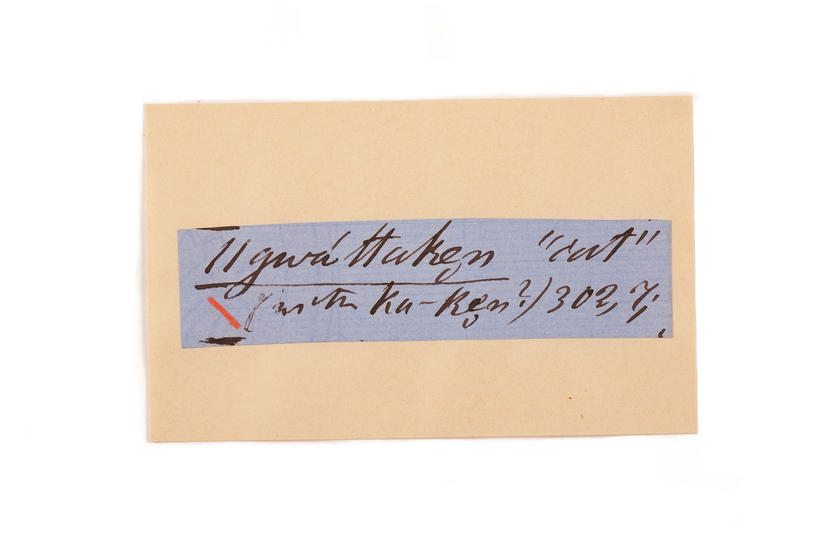 ink on blue paper glued on card