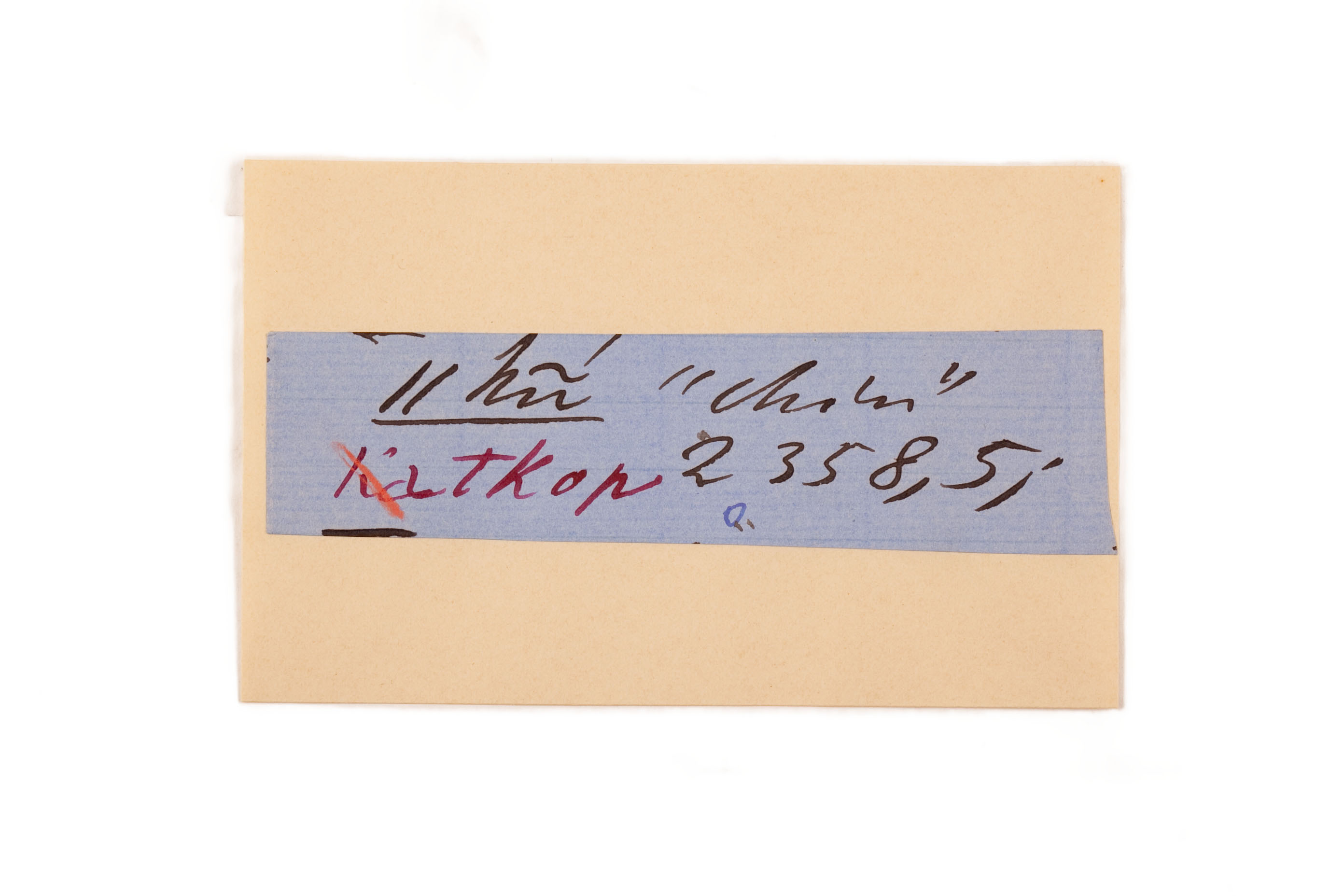 ink on blue paper glued on card