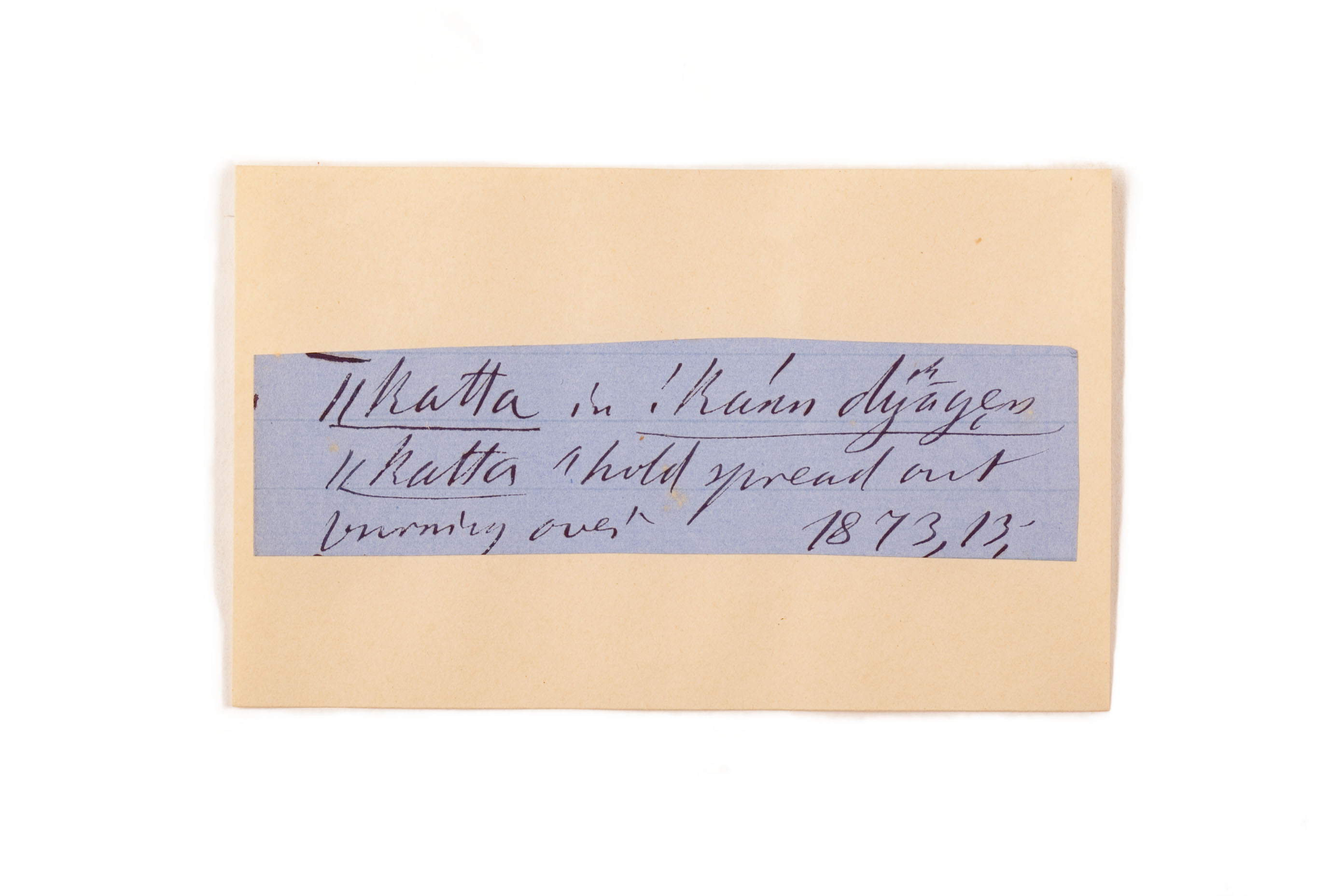 ink on blue paper glued on card