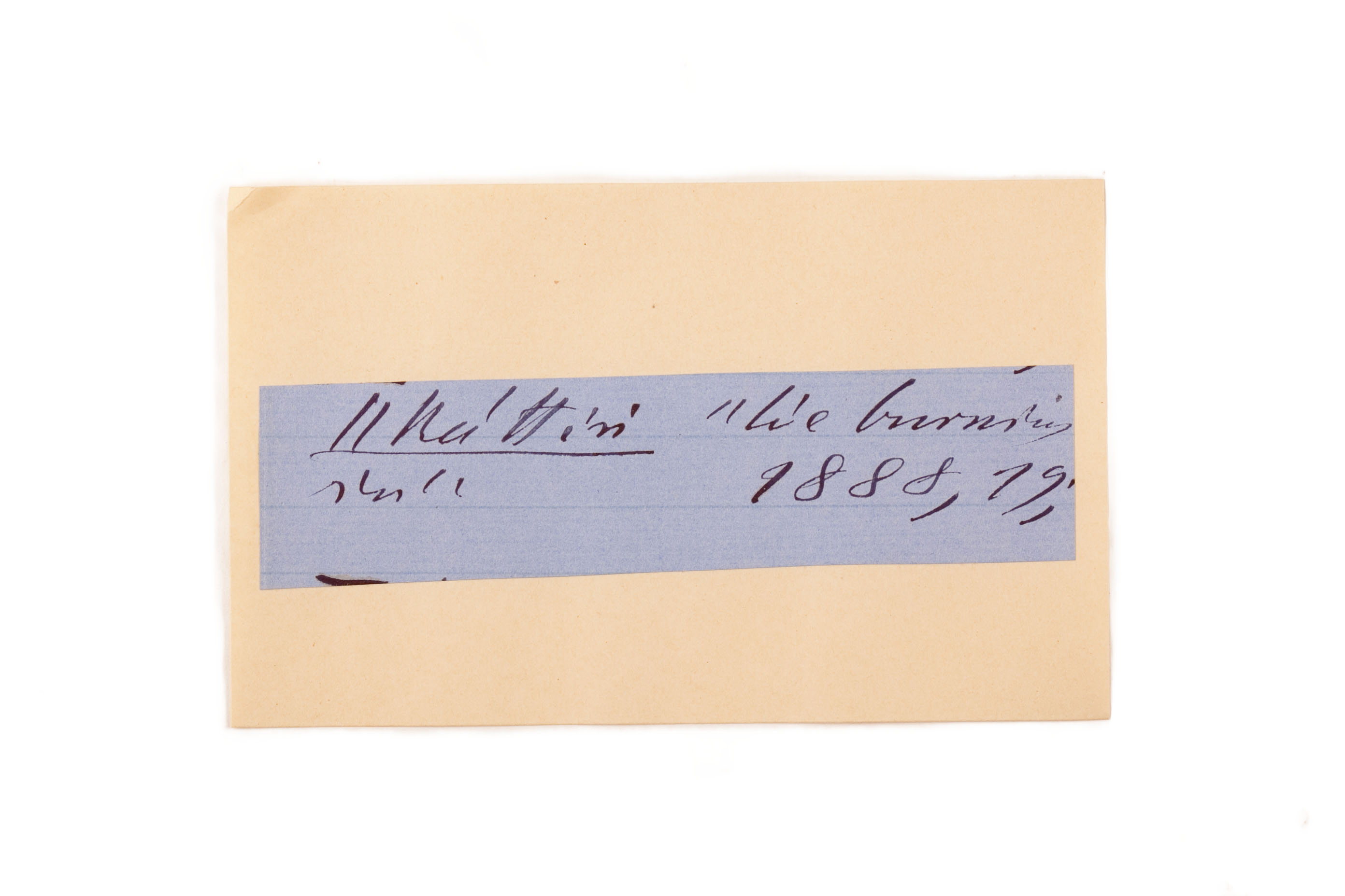 ink on blue paper glued on card