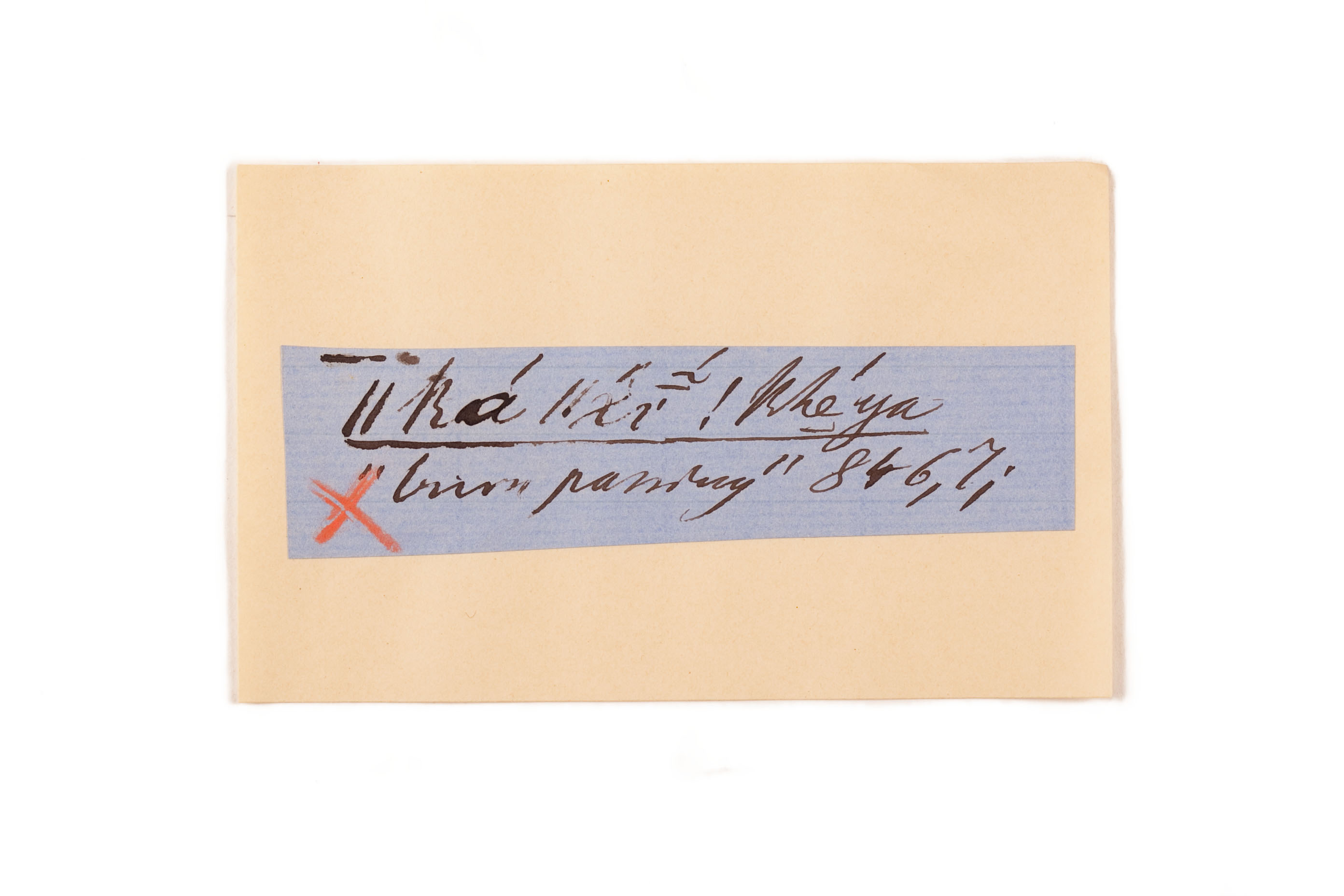 ink on blue paper glued on card