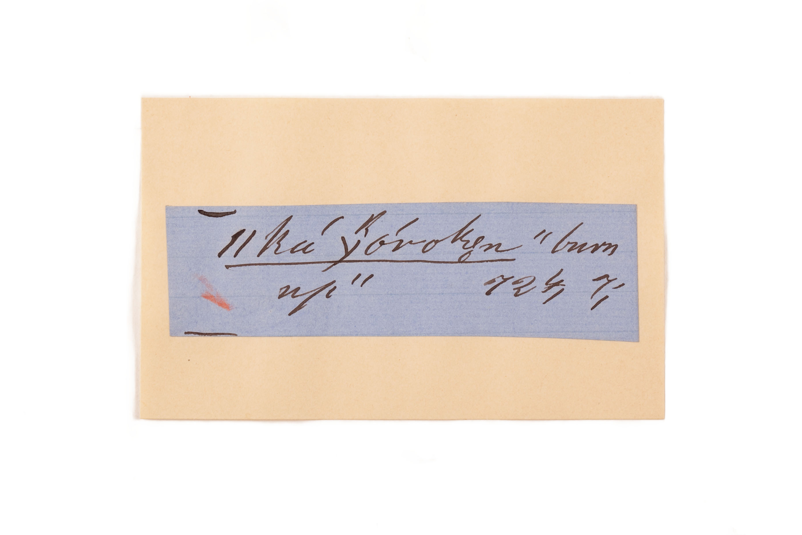 ink on blue paper glued on card