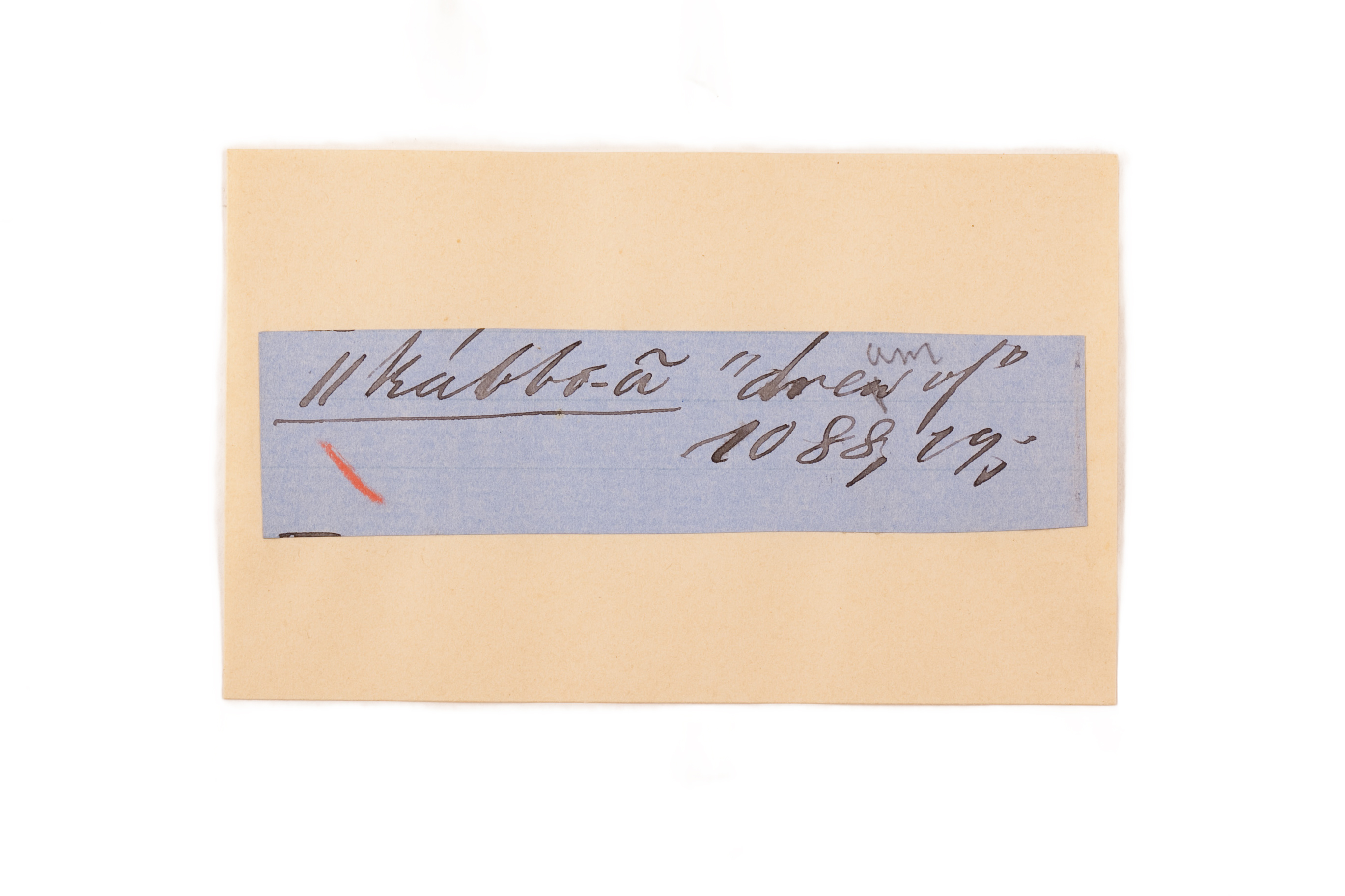 ink on blue paper glued on card
