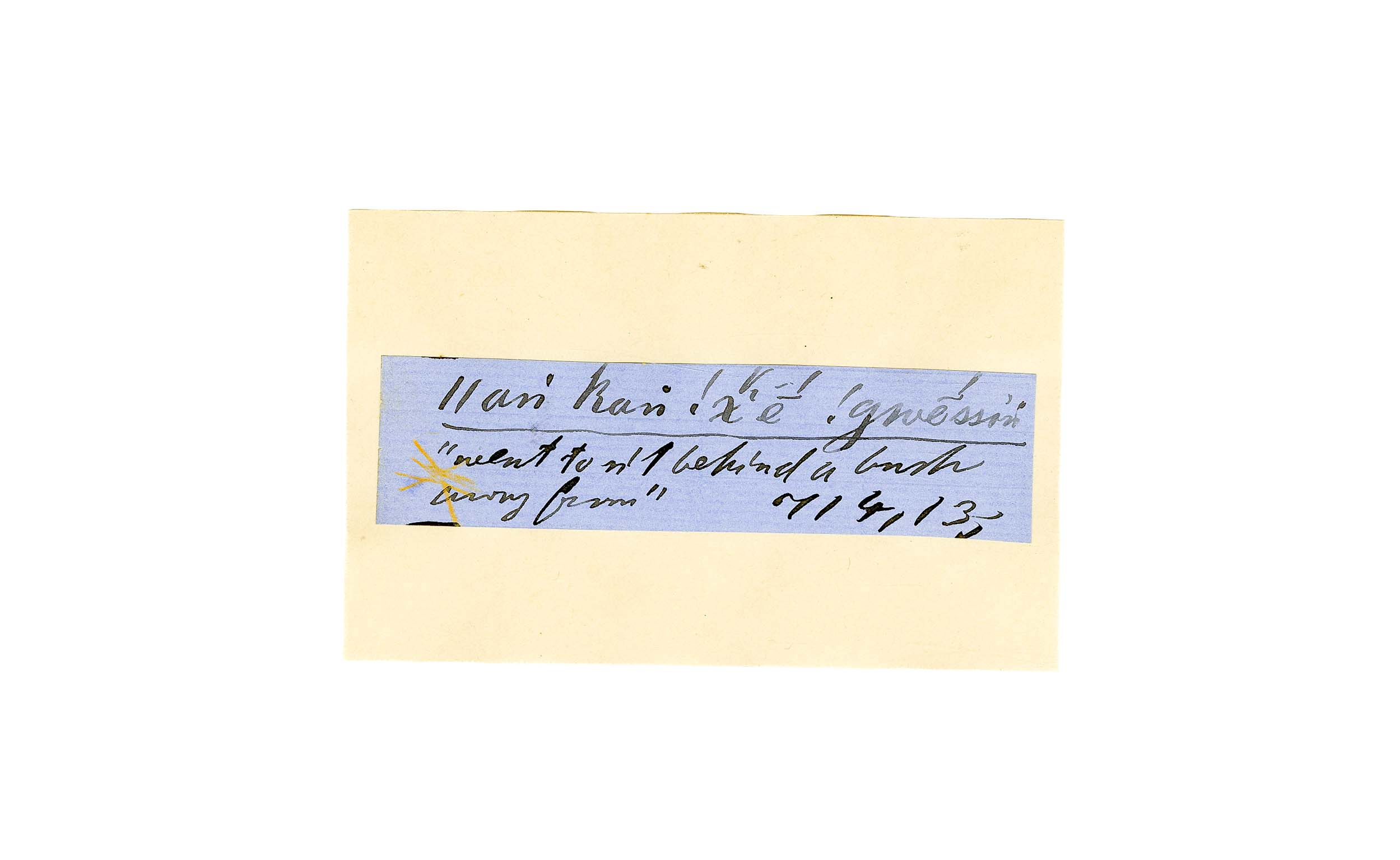 ink on blue paper glued on card