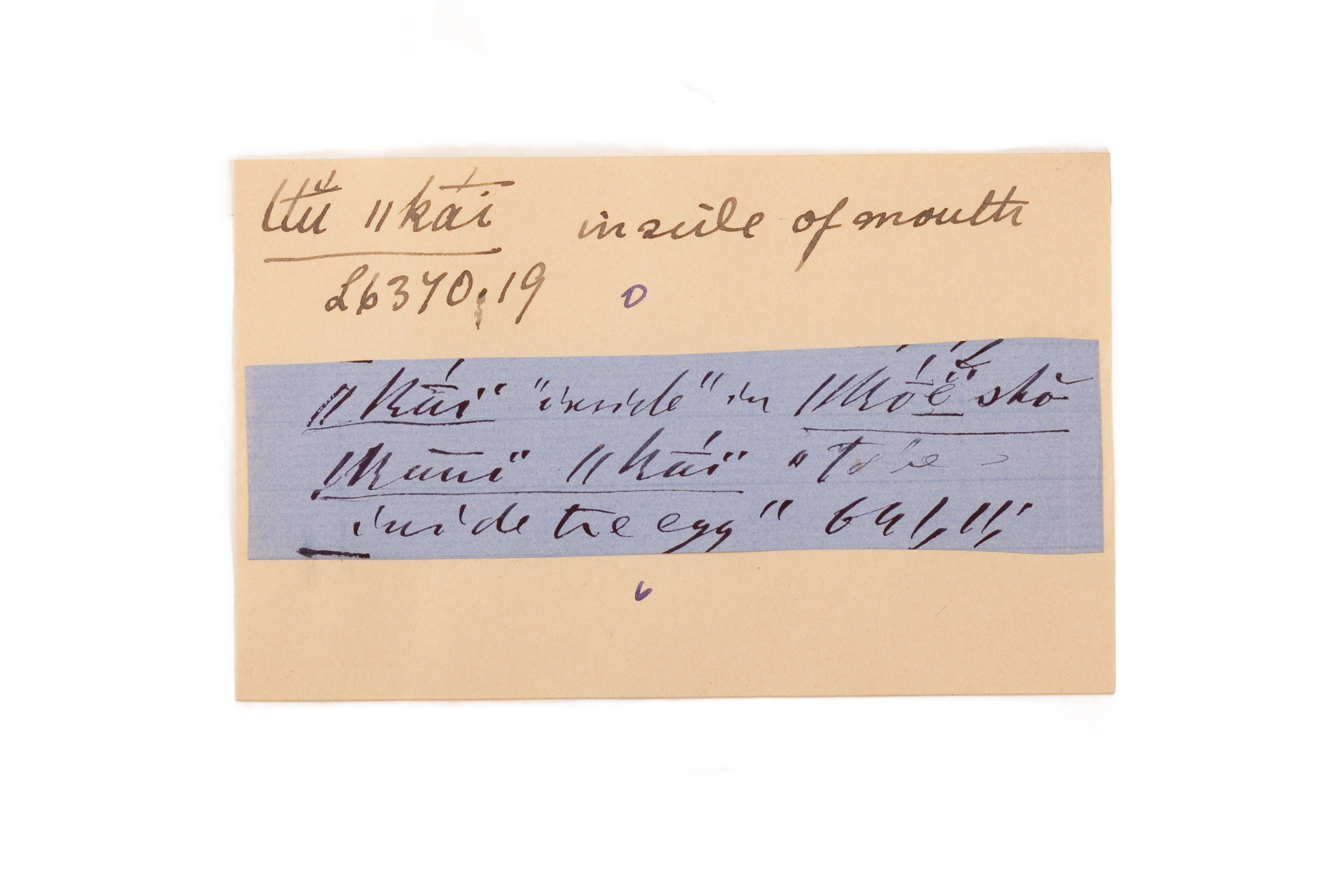 ink on blue paper glued on card