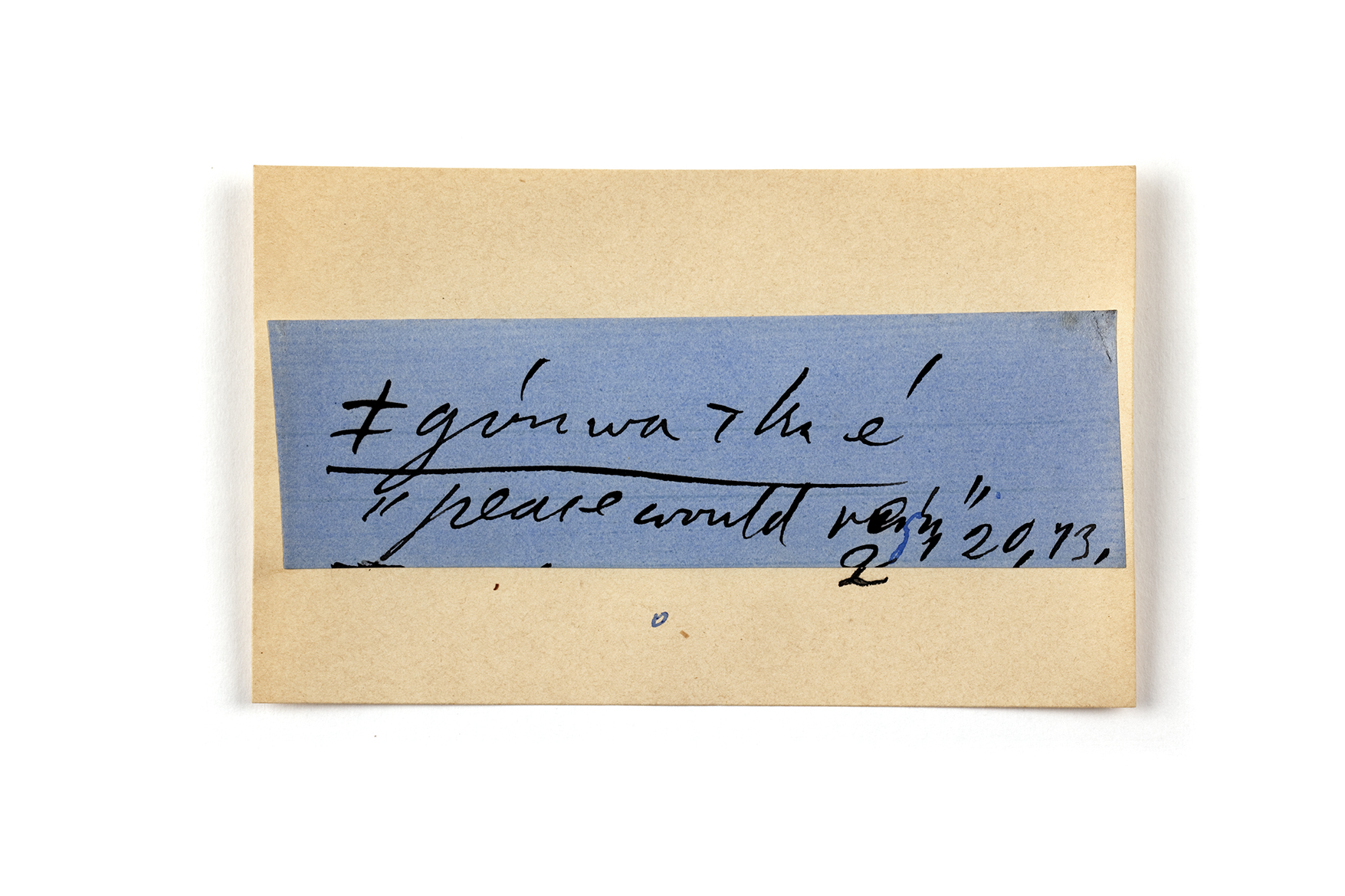 ink on blue paper glued on card