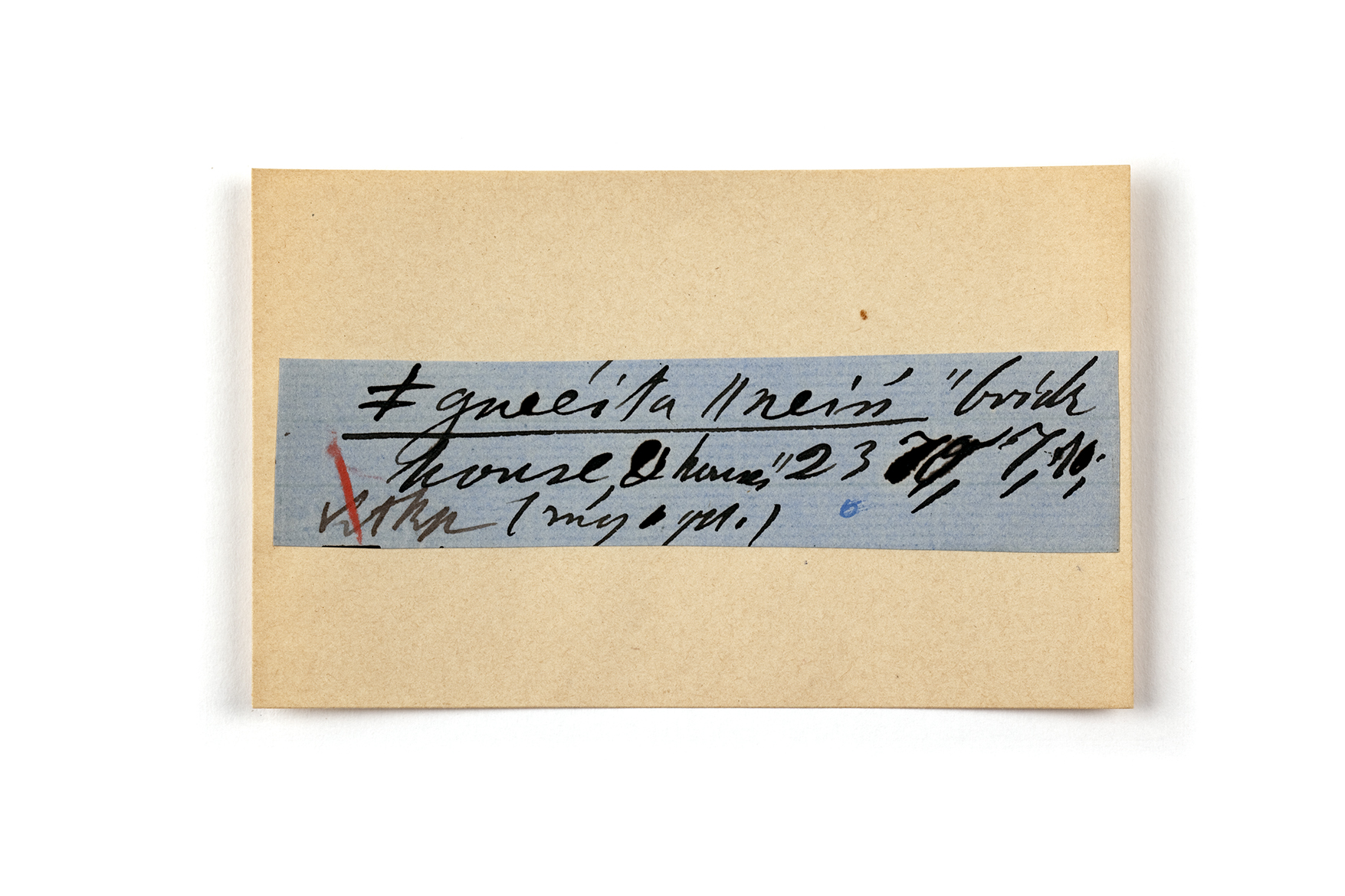 ink on blue paper glued on card