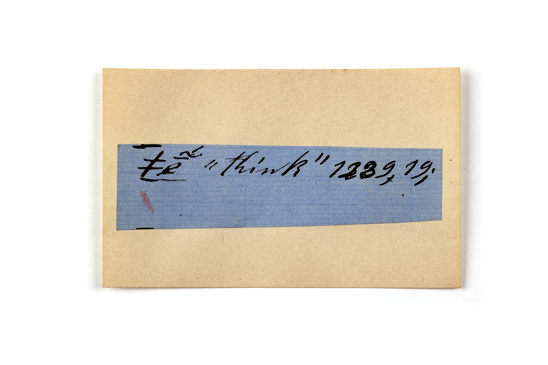 ink on blue paper glued on card