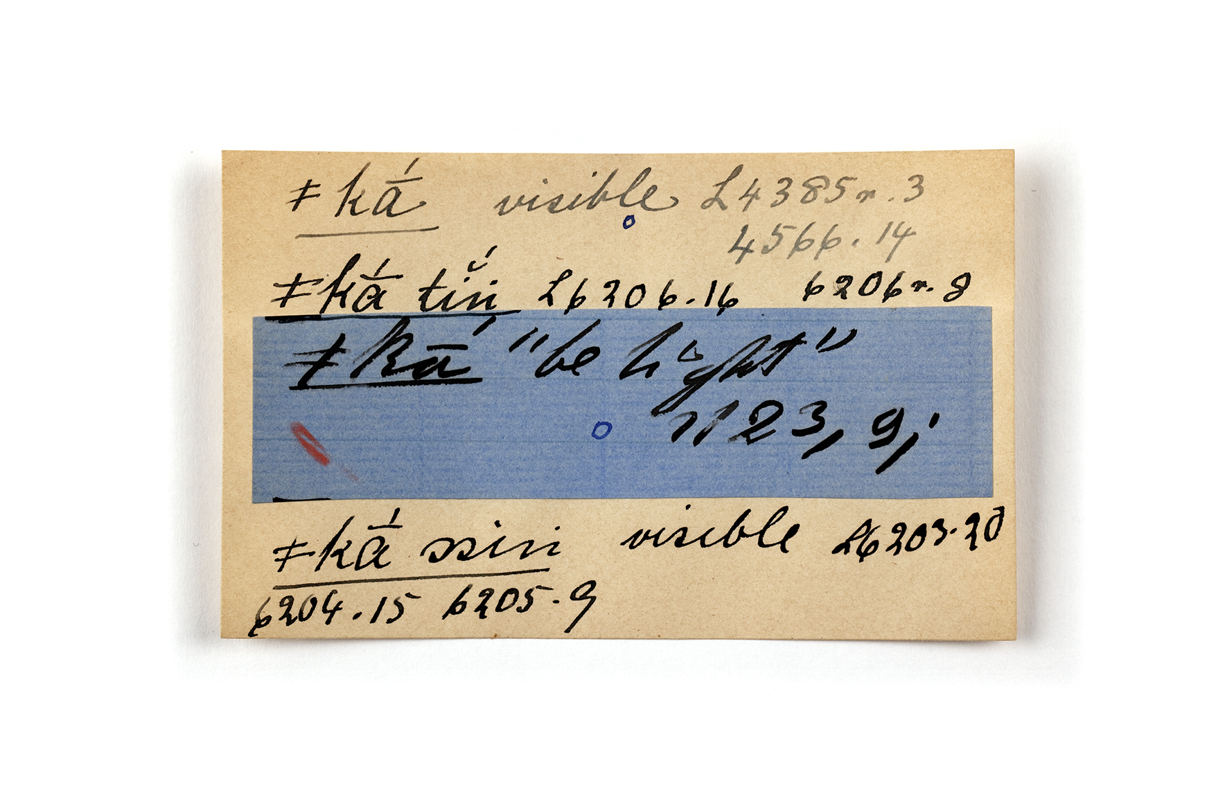 ink on blue paper glued on card