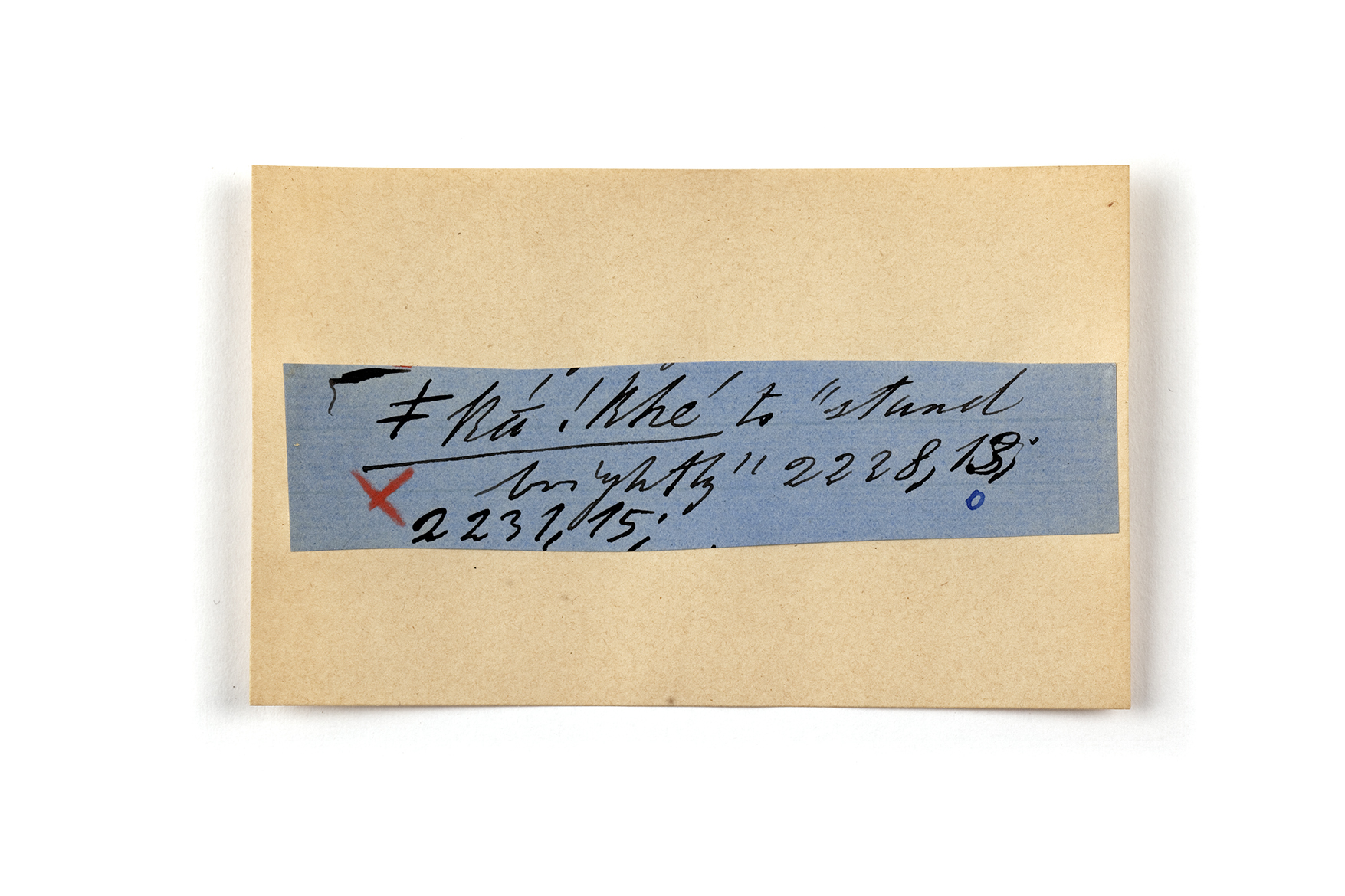 ink on blue paper glued on card