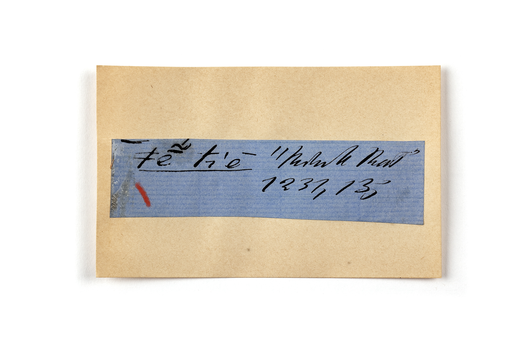 ink on blue paper glued on card