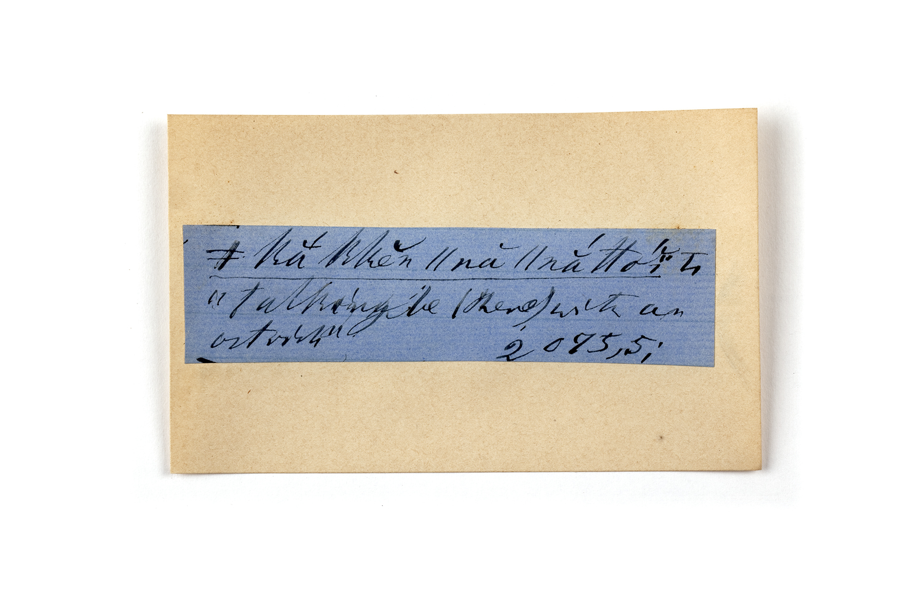 ink on blue paper glued on card