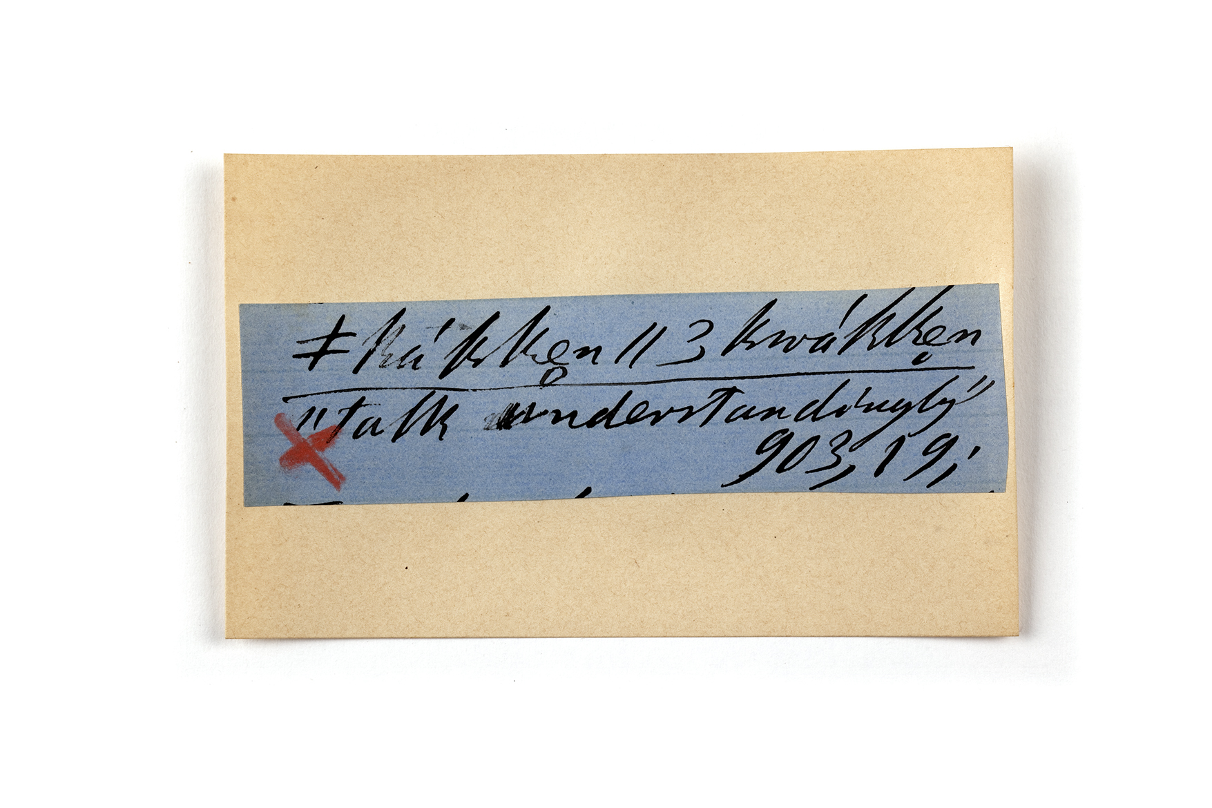 ink on blue paper glued on card
