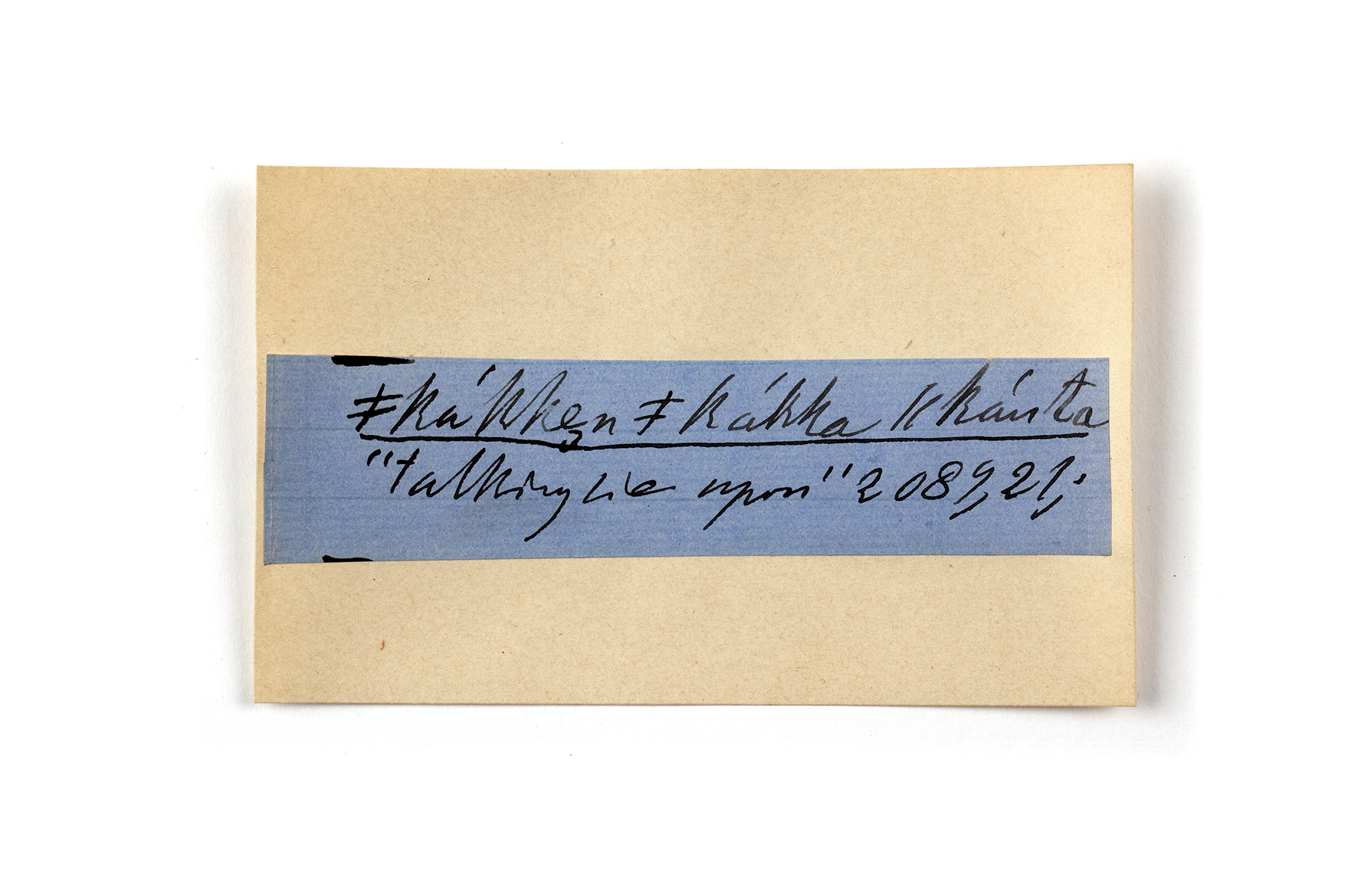 ink on blue paper glued on card