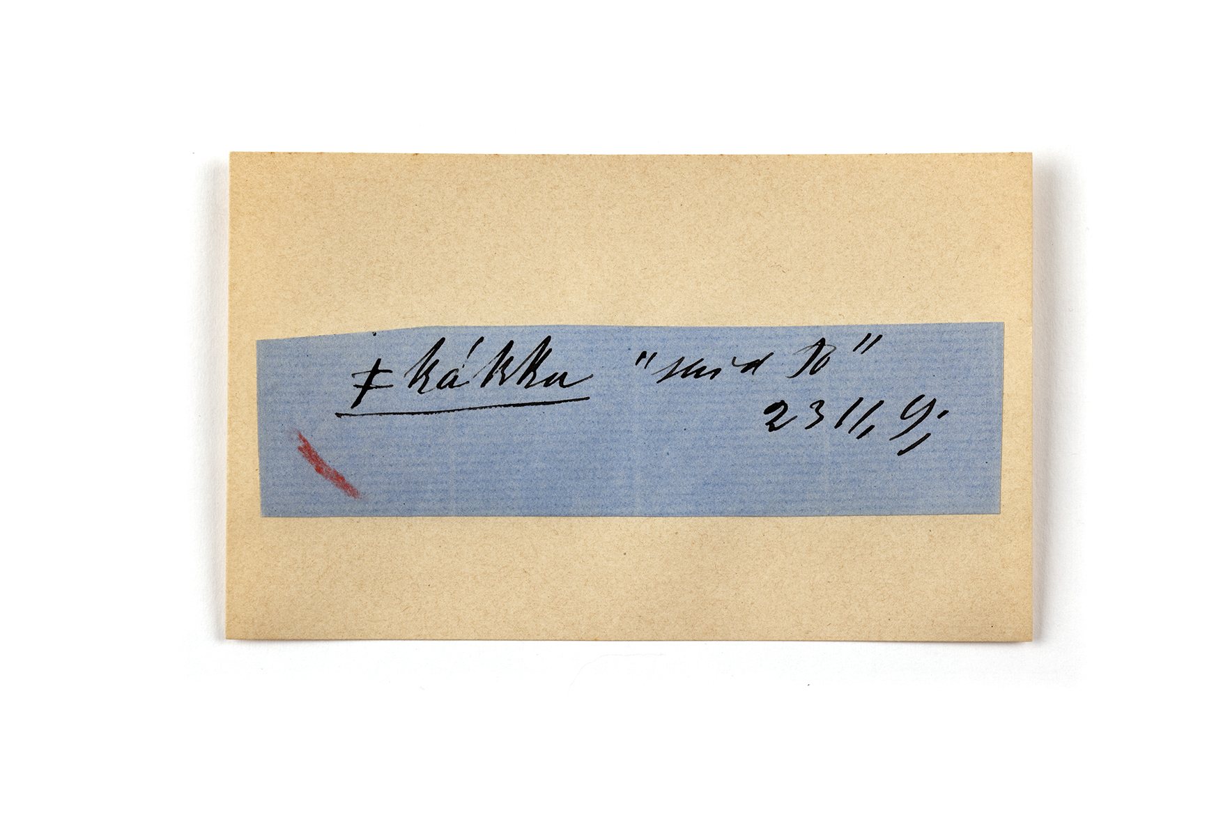 ink on blue paper glued on card