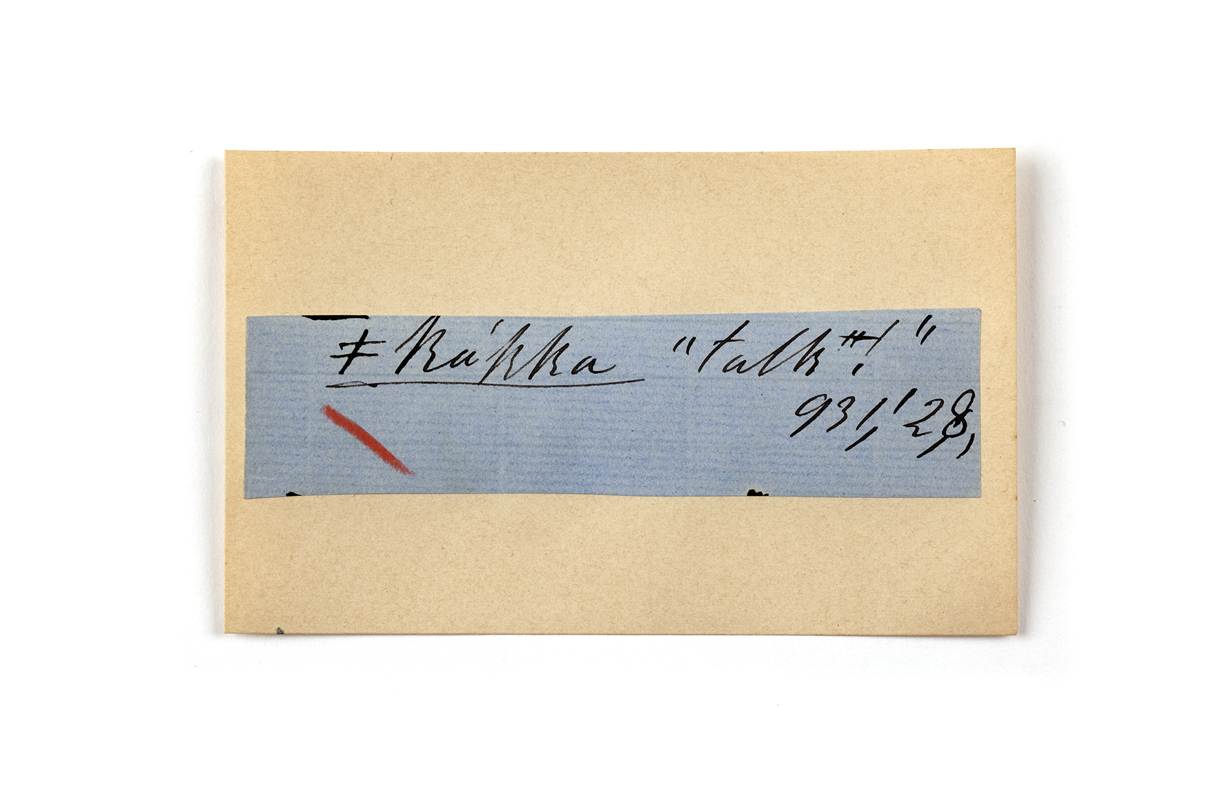 ink on blue paper glued on card