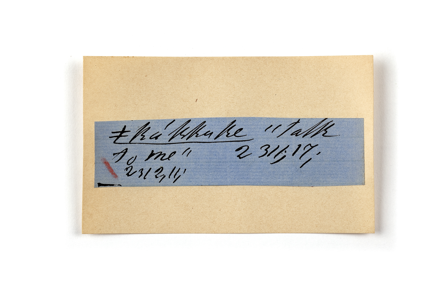 ink on blue paper glued on card