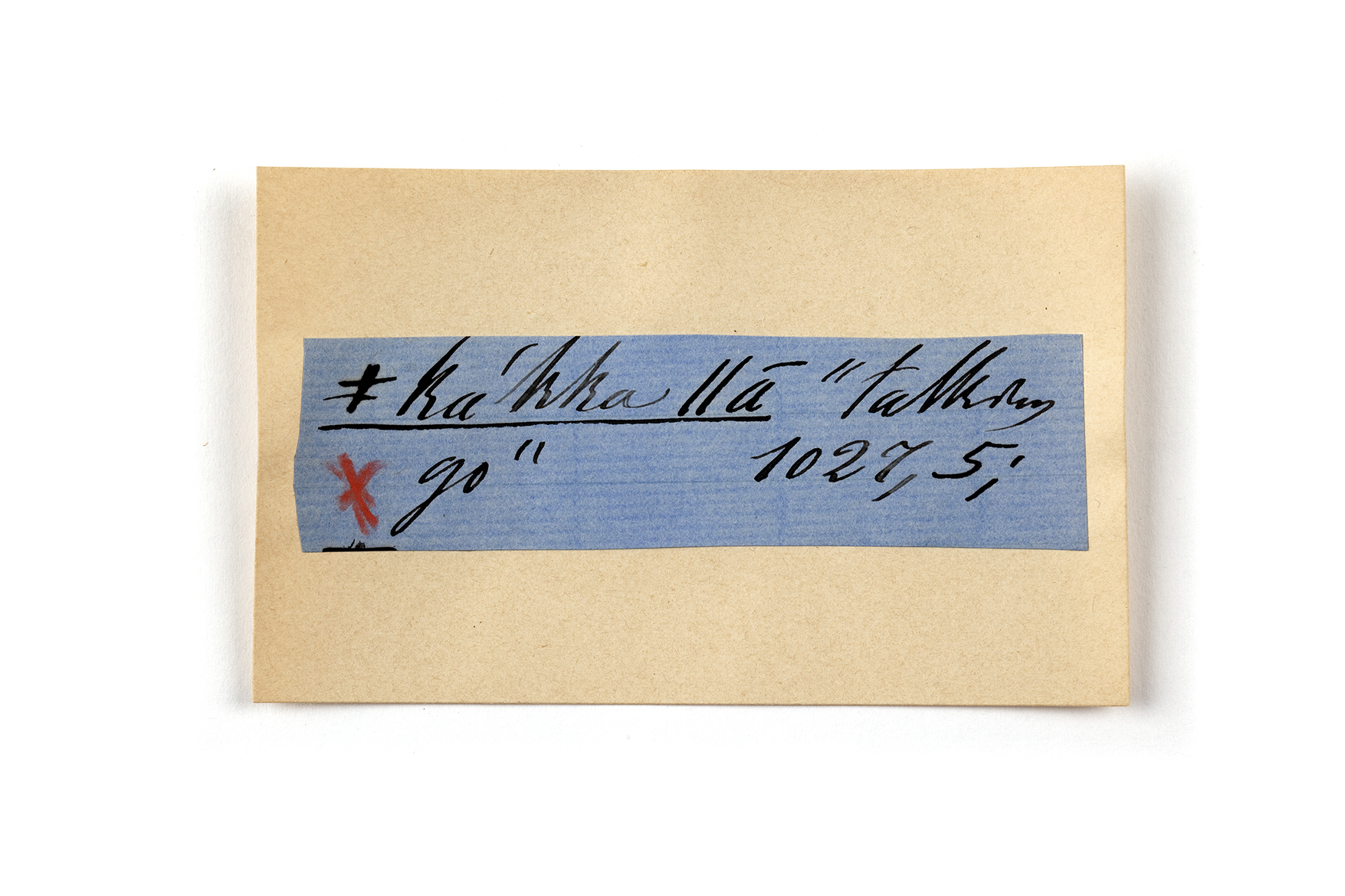 ink on blue paper glued on card